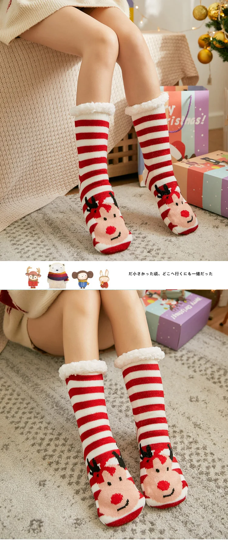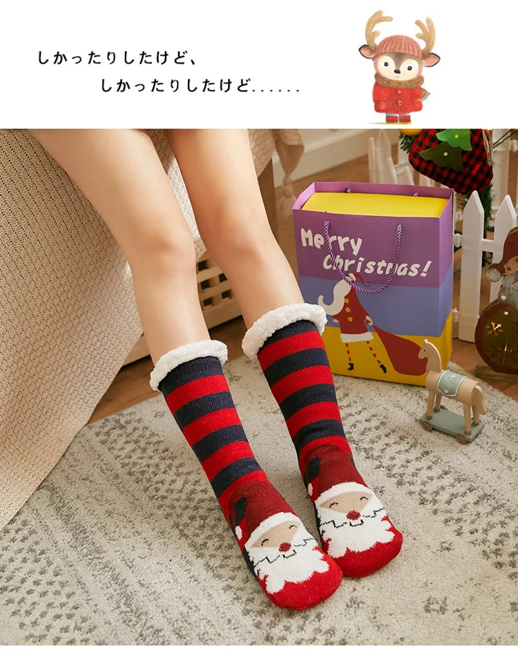 Рождественские пушистые тапочки носки женские зимние теплые плюшевые Нескользящие мягкие женские полосатые пушистые носки вязаные подарки Санты