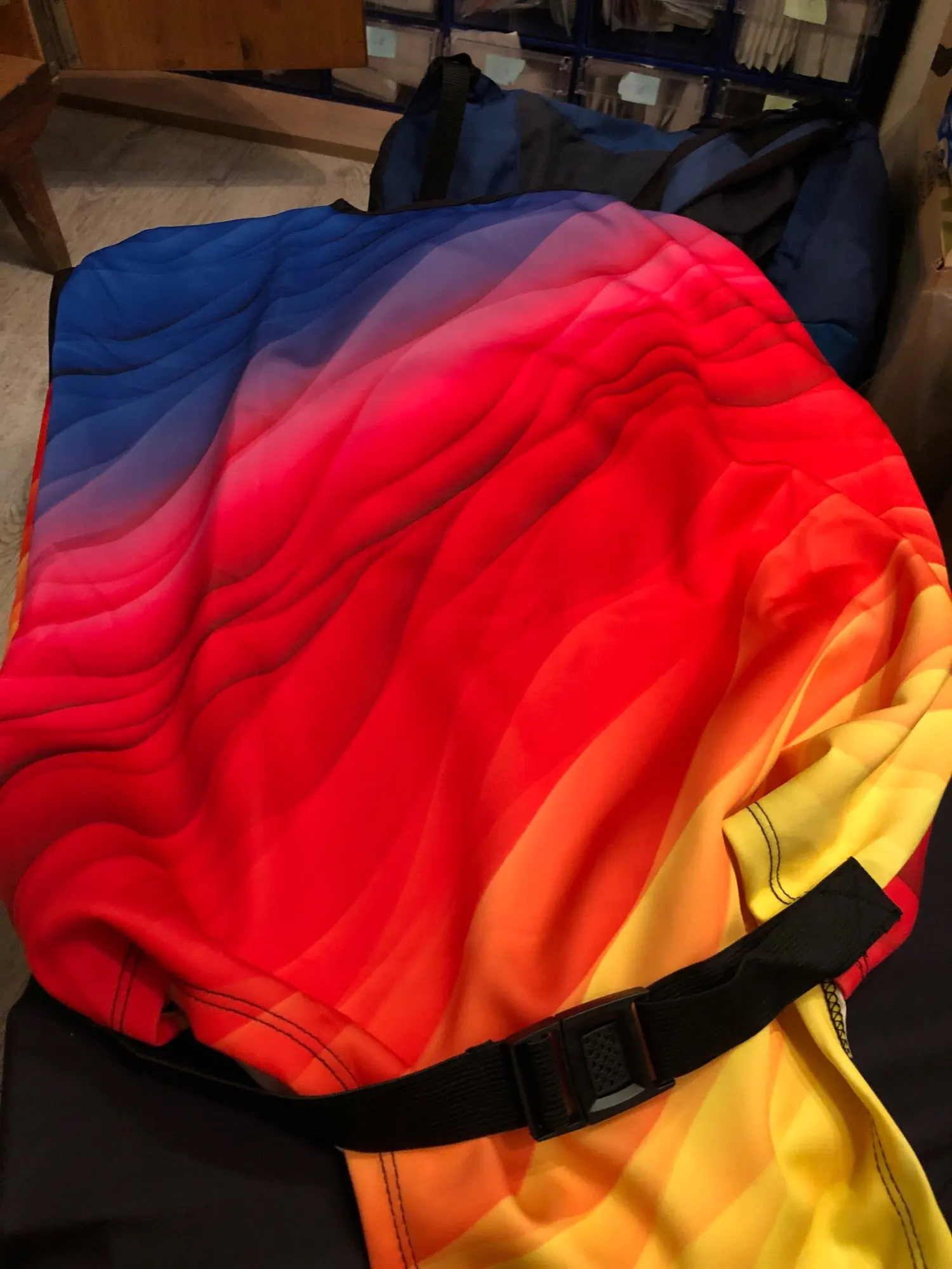 Классный чехол,плотный,молния хорошая,внизу резинка, на застежке,по бокам отверстия для ручек с молниями потайными.Очень довольна