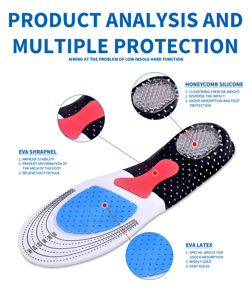 Мужские и мужские стельки Baasploa из силикагеля, ортопедические стельки с высокой поддержкой свода стопы, стельки для спортивной ходьбы и бега, размер 35-46