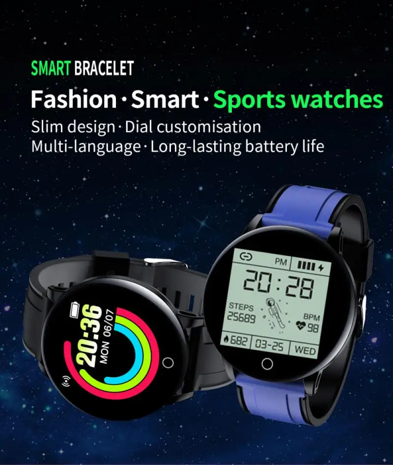 3.IP65 водонепроницаемый для повседневной жизни, мульти-спортивный режим, подходит для занятий спортом на открытом воздухе. Автоматически записывает ежедневный шаг движения и данные о калориях.