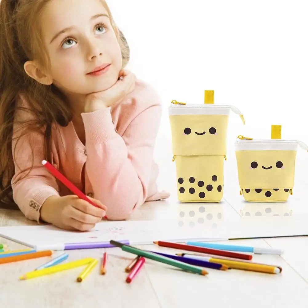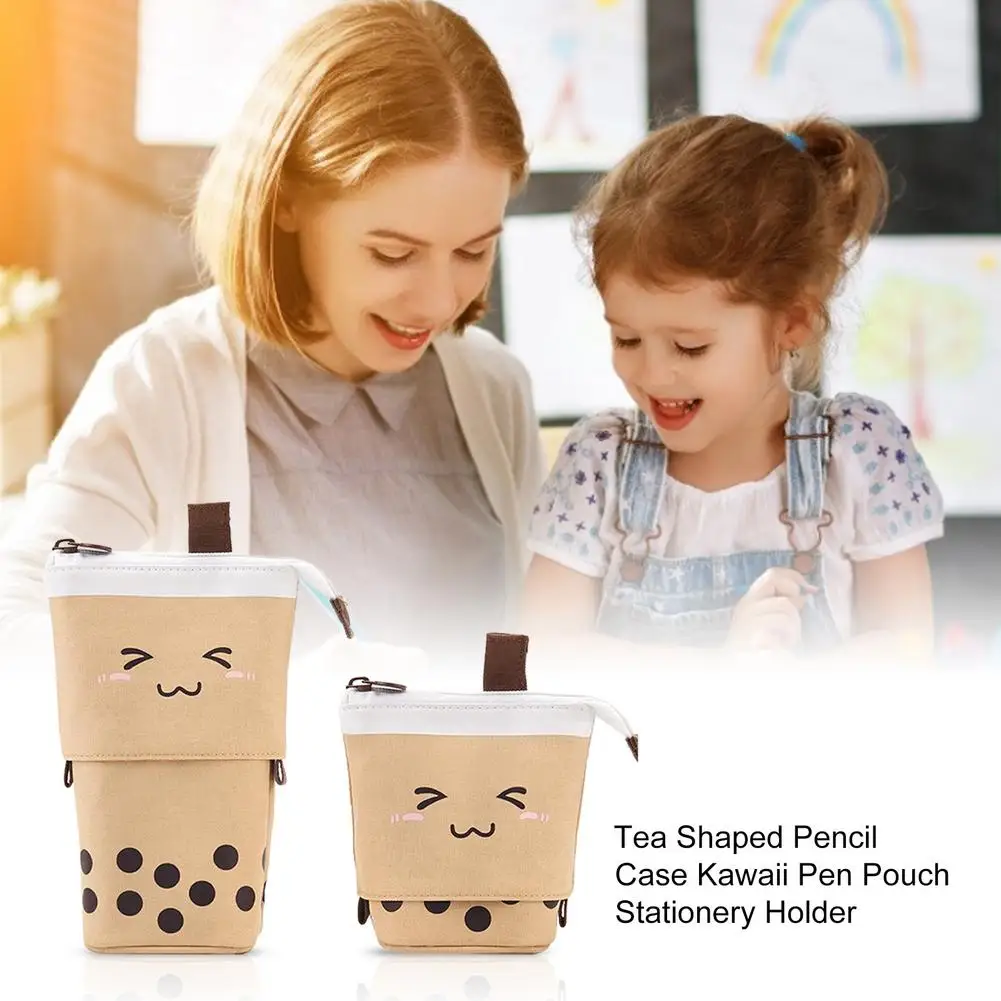 Милый Телескопический пенал Boba с молочным чаем, держатель для ручек и карандашей, канцелярские принадлежности, чехол-подставка для карандашей, Канцелярский чехол, коробка для студентов, 1 комплект