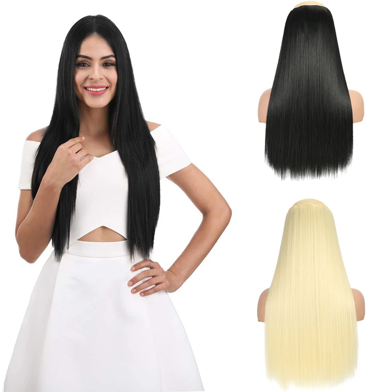 SHANGKE синтетические 24 дюймовые прямые накладные волосы на клипса...