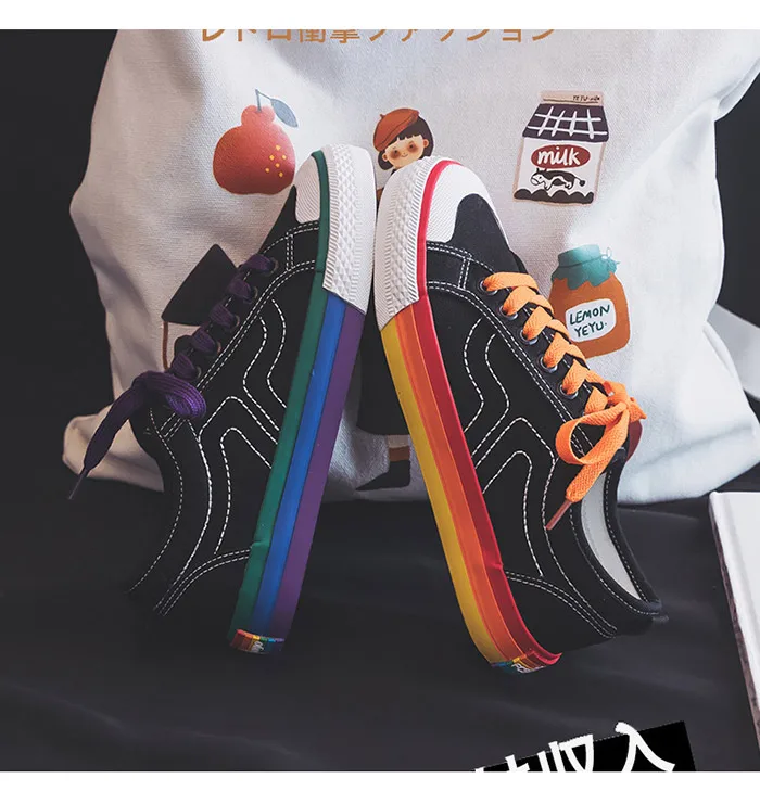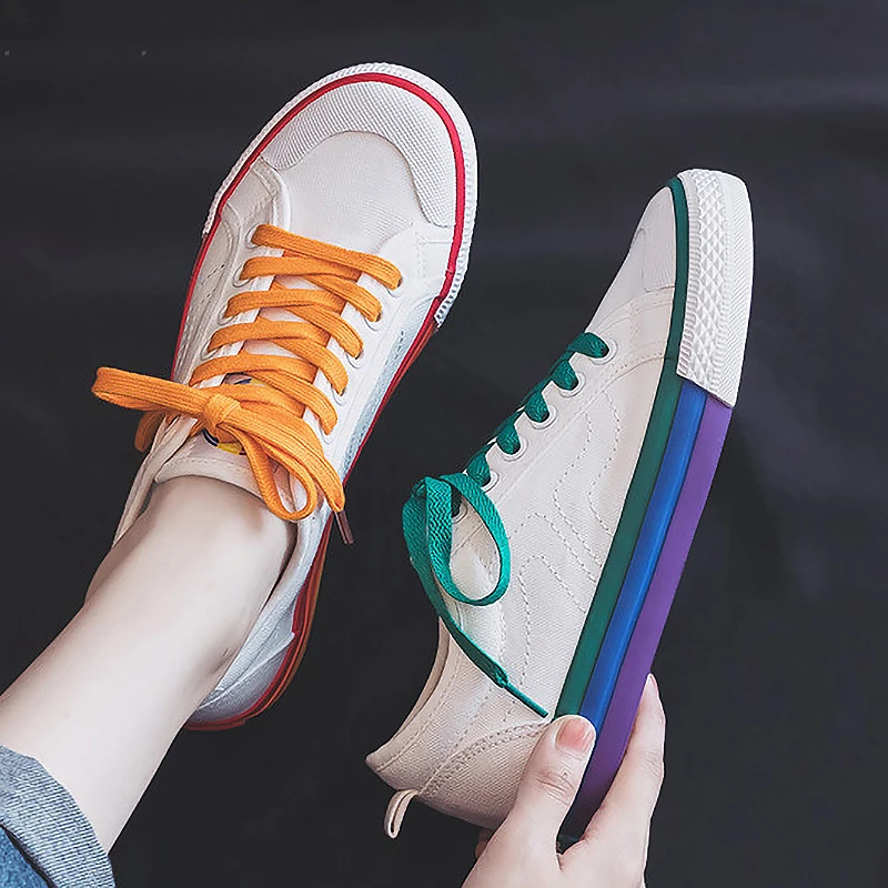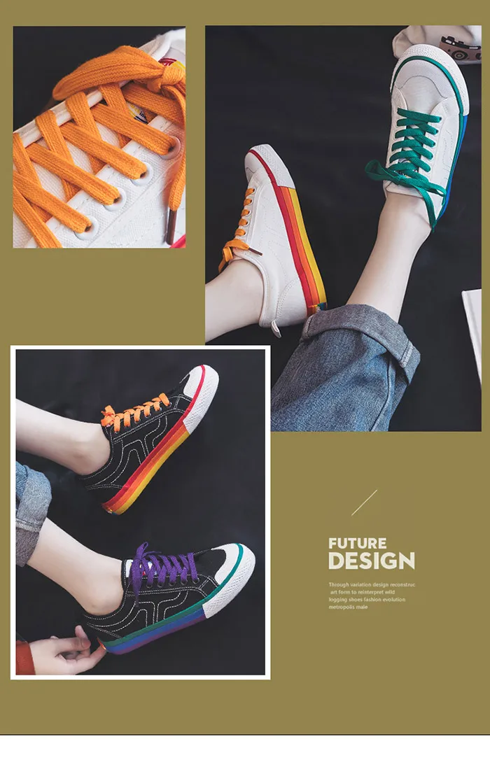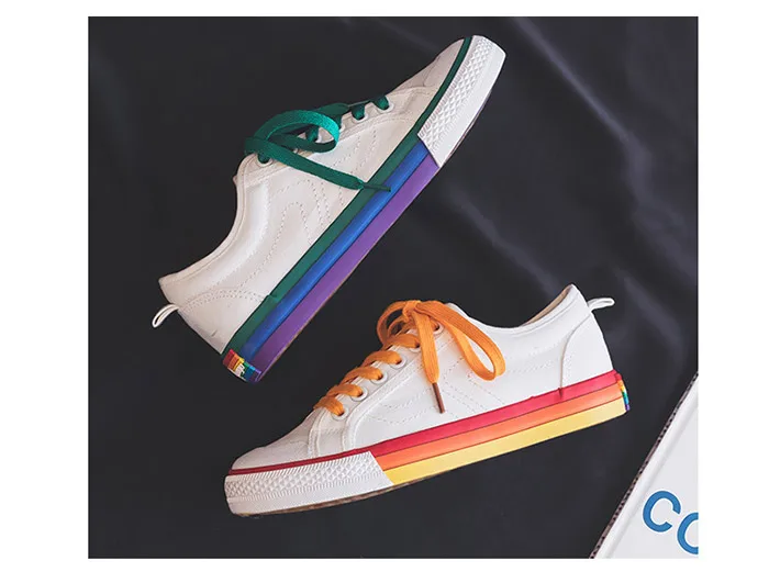 Кеды женские радужные, Вулканизированная подошва, плоская подошва, ...