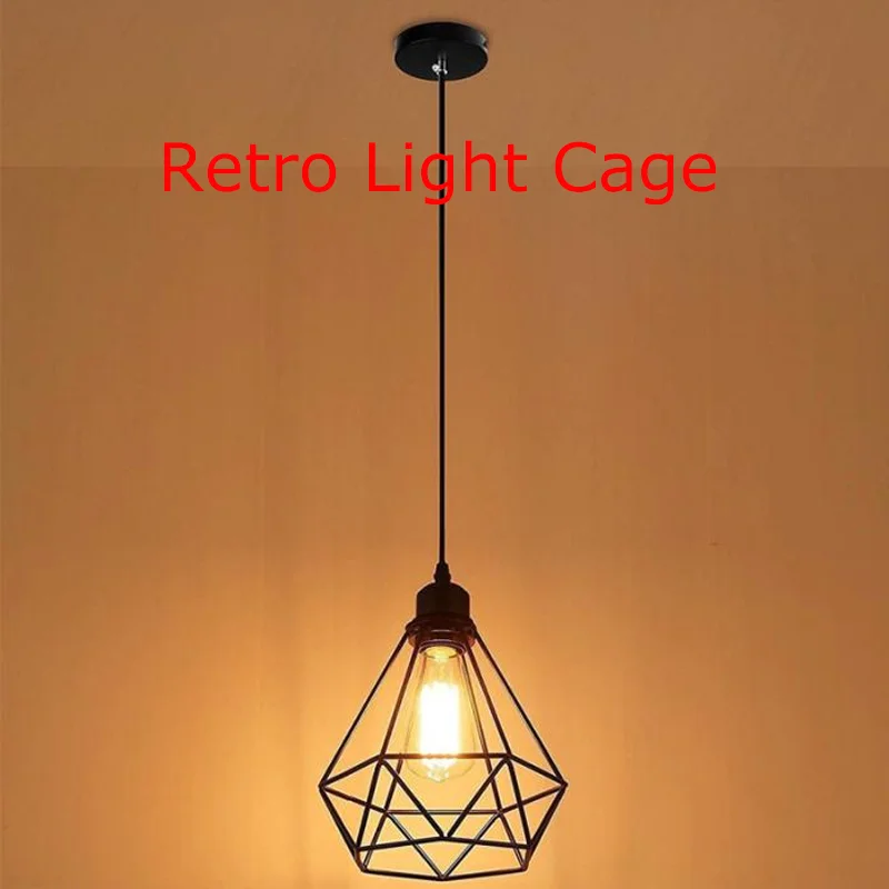Металлический кожух E27, подвесной светильник, ромбовидный Потолочный подвесной абажур, металлическая проволочная клетка для светильник пы, промышленный стиль