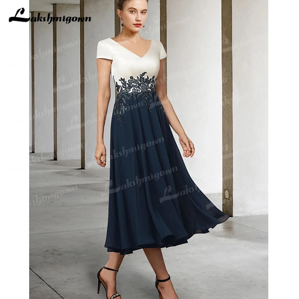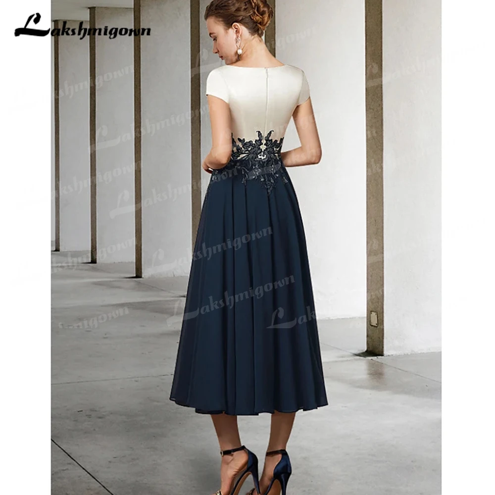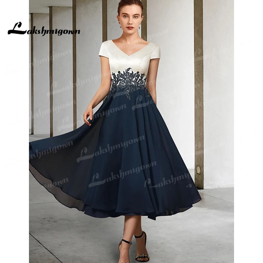 Винтажное синее платье для матери невесты с коротким рукавом женско...