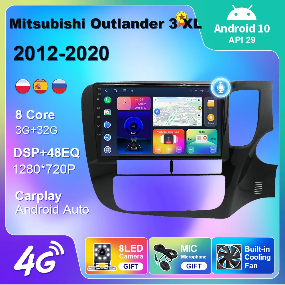 Автомагнитола 2 Din для Mitsubishi Outlander 3 III 2012-2021, Android 10, 4G, Wi-Fi, DSP, BT, Carplay, без DVD-плеера
