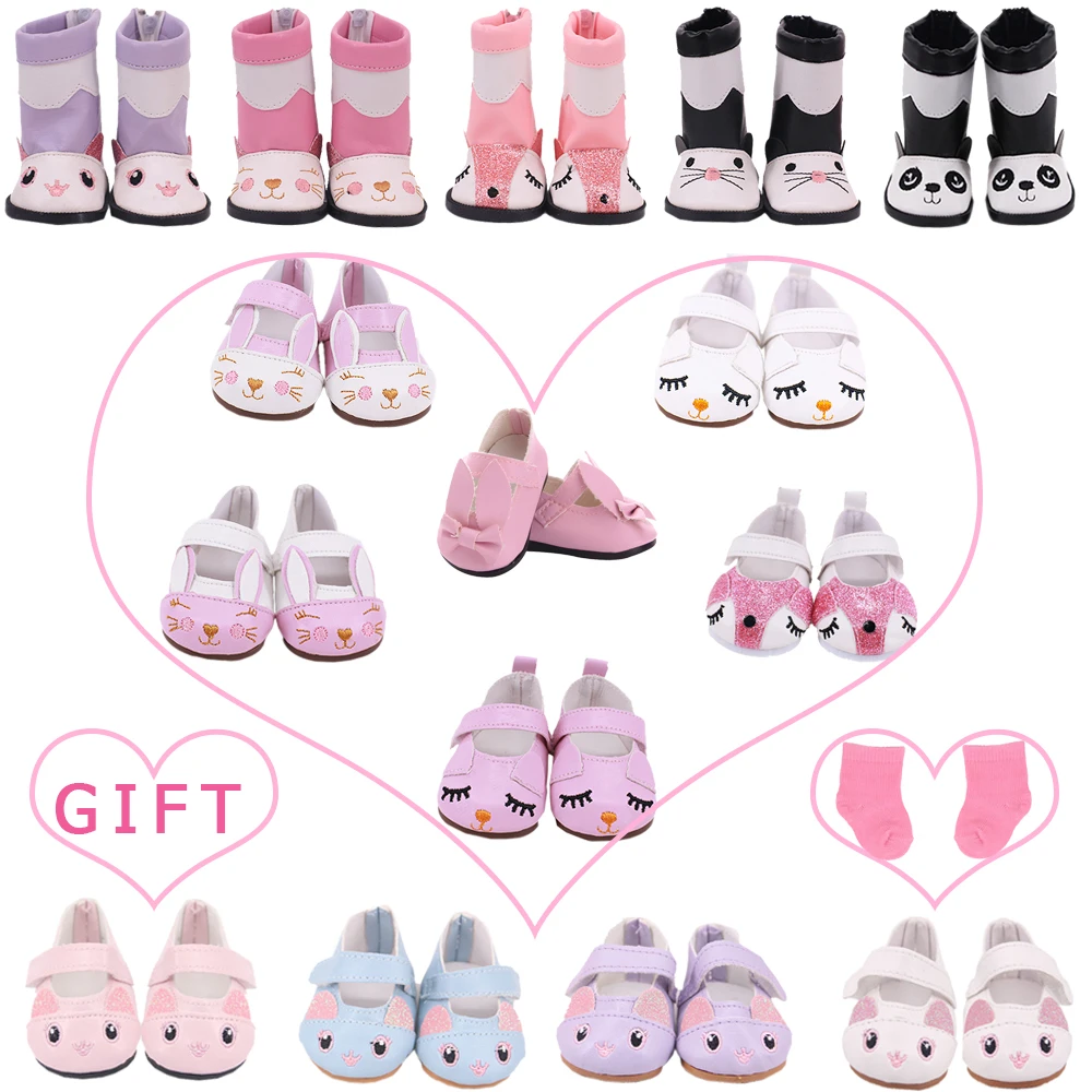 Обувь для кукол Розовая котенок, обувь из ПУ кожи, Размер 7 см, подарок для американской куклы 18 дюймов, 43 см, игрушка для новорожденных, подарок поколения
