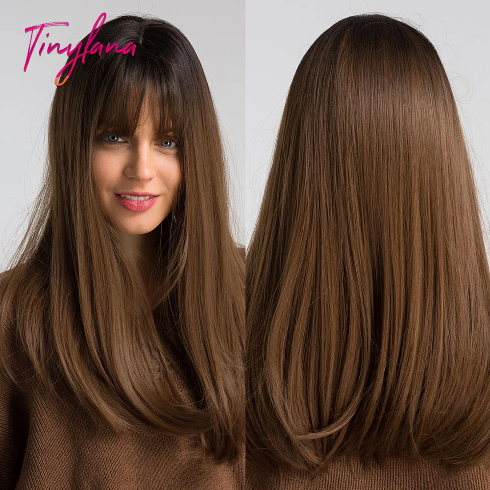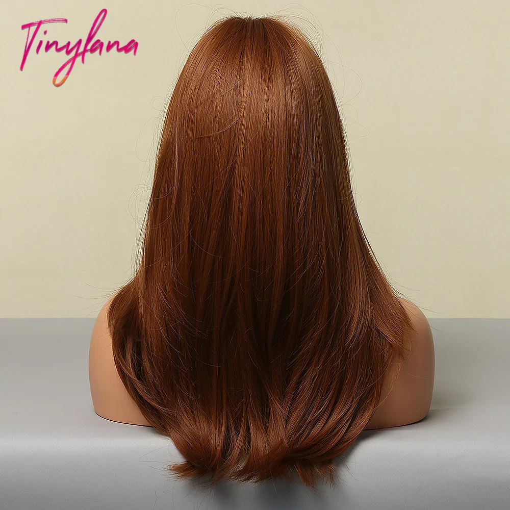 Длинные прямые синтетические парики с челкой для женщин, медные, коричневые, блонд, многослойные волосы, натуральный косплей, повседневные жаропрочные волосы