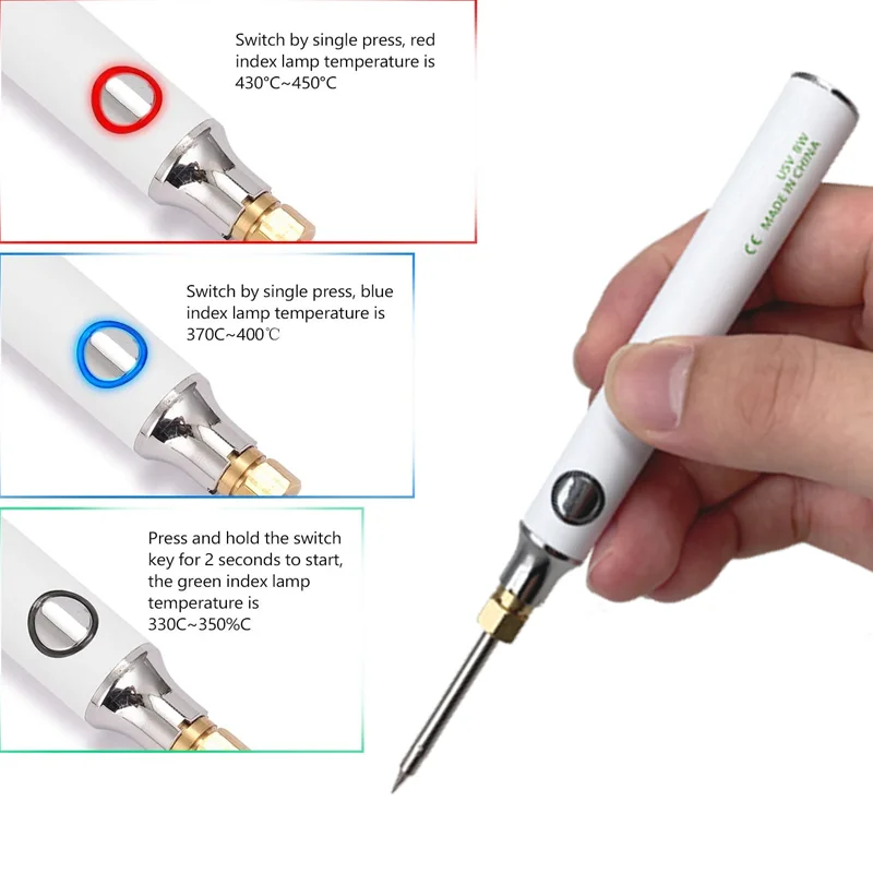 Портативный мини-паяльник 8 Вт, 5 В, USB, зарядка, сварочные наконечники, fpr, для работы на открытом воздухе, для самостоятельной сварки
