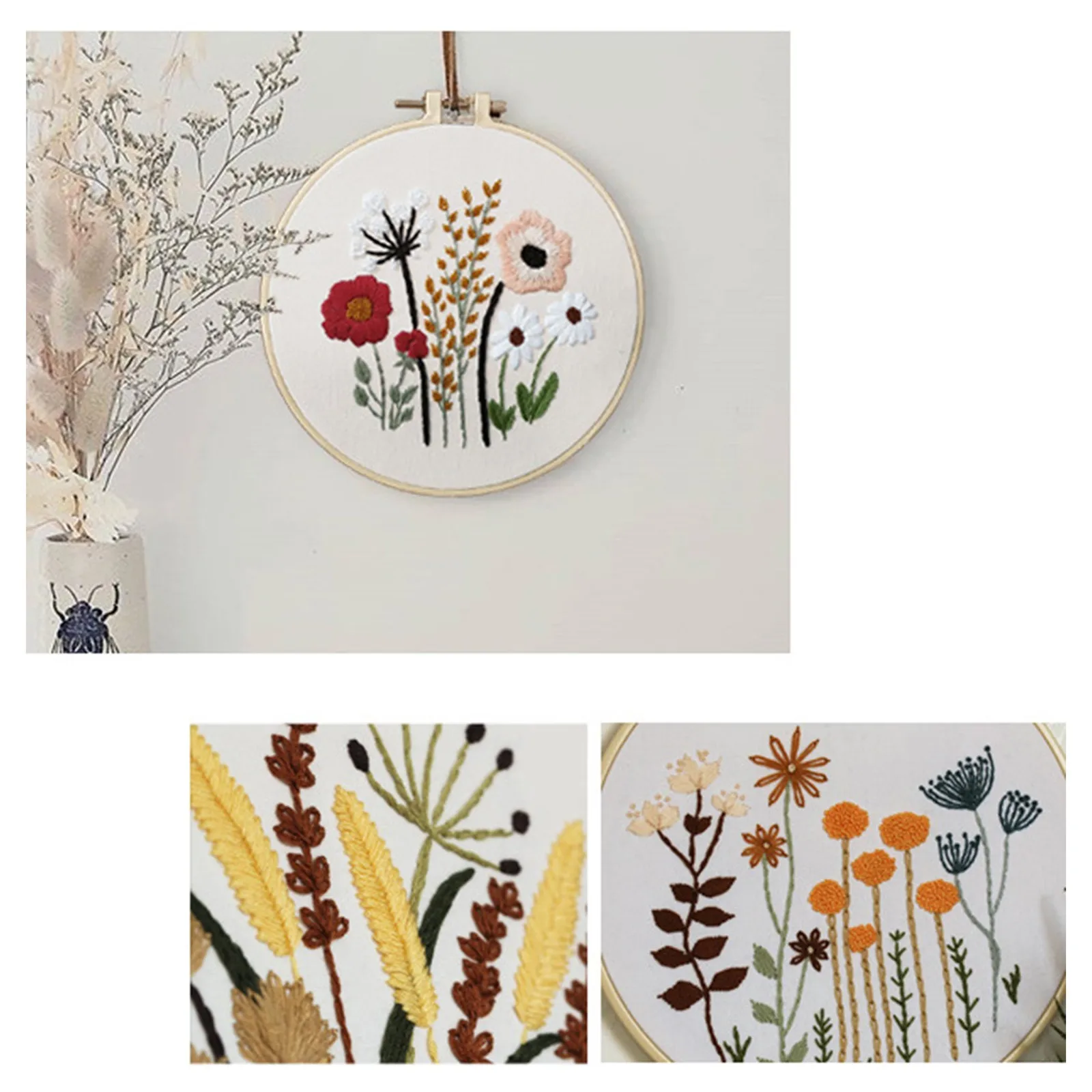 Набор для самостоятельной вышивки с растительным цветочным узором, Бамбуковая вышивка, обруч с цветными нитями, Набор для вышивки крестиком D50
