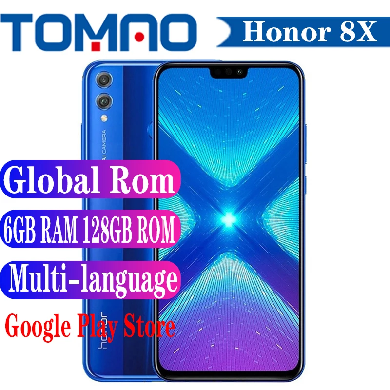 Мобильный телефон Honor 8X, экран 6,5 дюйма, 4 Гб 6 ГБ ОЗУ 64 Гб 128 Гб ПЗУ, Восьмиядерный процессор HiSilicon Kirin 710, 3750 мАч, двойная тыловая камера 20 МП, Google Play