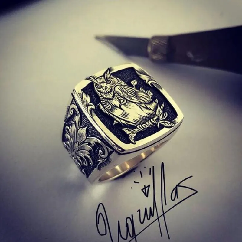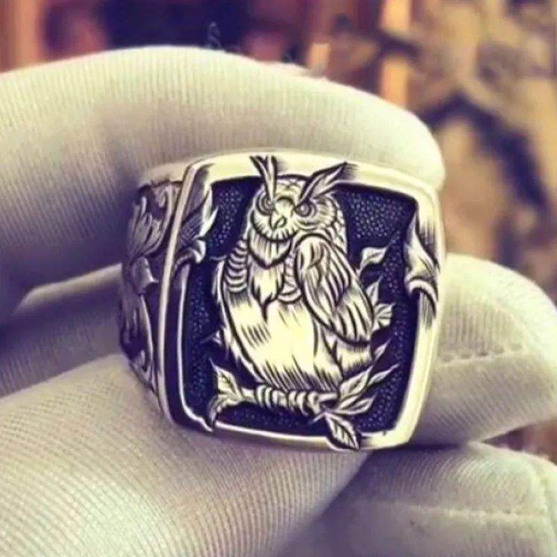 Новинка мужские ретро кольца в европейском и американском стиле с изображением совы и животных хип-хоп, панк украшения резное рельефное кольцо с цветком кольца ручной работы