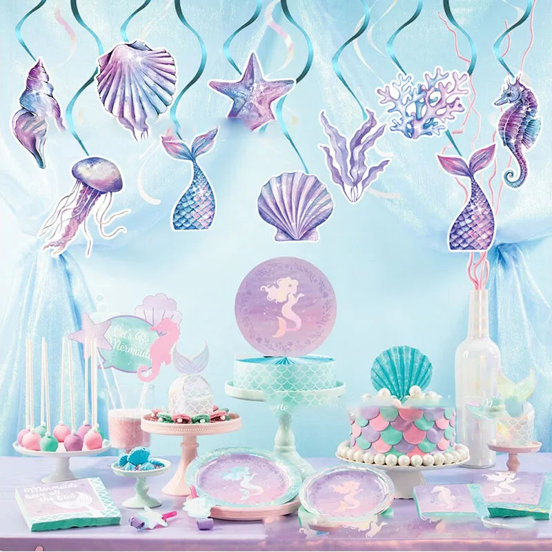 Тема русалки, гирлянды, подвеска, водная раковина, морская лошадь, спиральная девушка, Русалка, 1-й день рождения, декор для вечеринки под морем, сделай сам