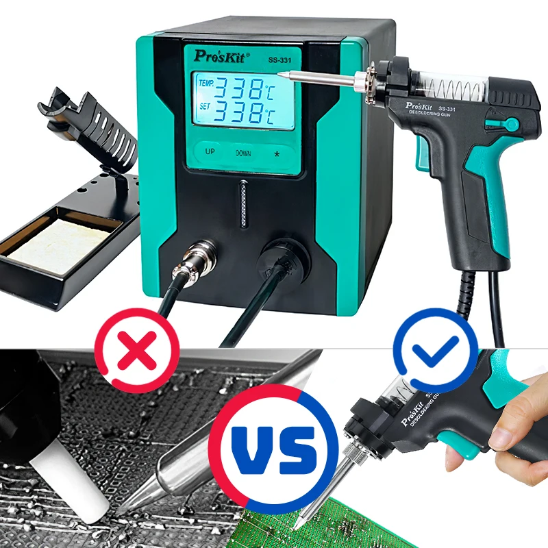 Станция для распайки Pro'sKit, цифровой электрический паяльник с ЖК-дисплеем, мощный Вакуумный паяльник с функцией автоматического спящего режима