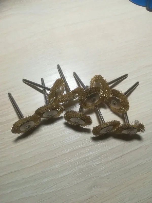 Латунная щетка, 10 шт.лот, проволочные колесные щетки, Поворотный электрический инструмент для гравера, Dreme 25 мм, поворотная латунная щетка для шлифовального станка