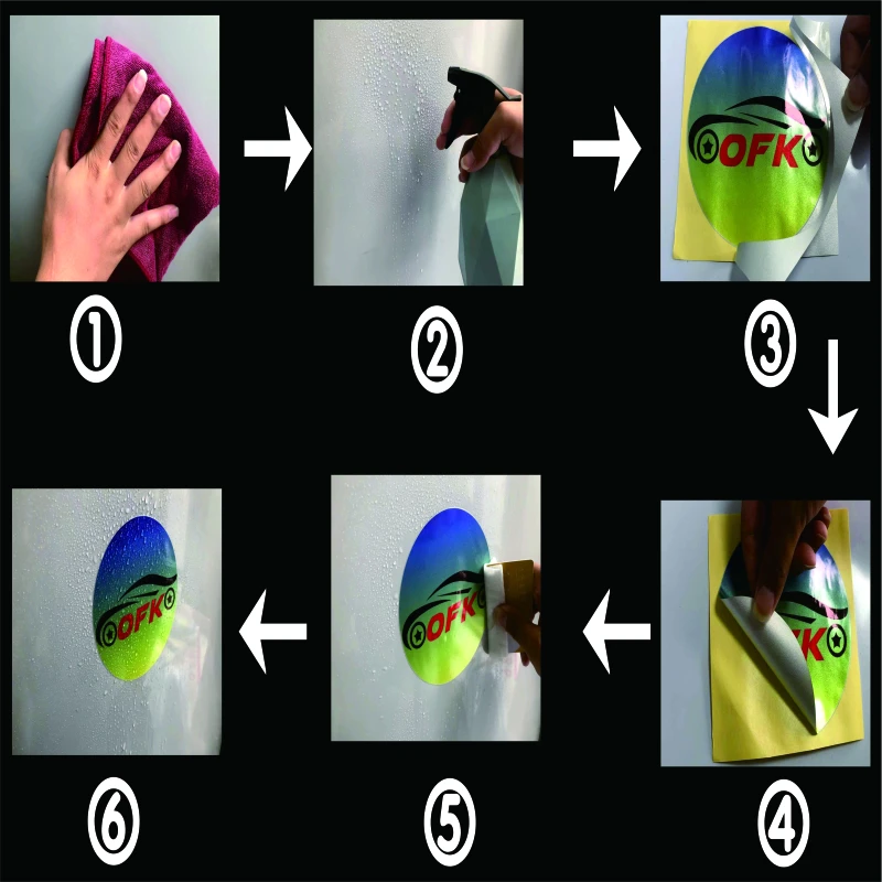 Установите хорошее положение, стикер аккуратно прикрепляется к корпусу транспортного средства с помощью пластикового скребок для соскребания, соскабливания воды и воздуха.