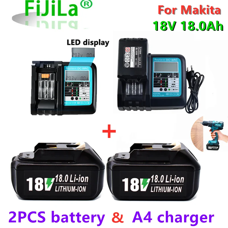 100% Оригинальный 18V 18Ah Перезаряжаемые Батарея Li-Ion Батарея Замена Мощность инструмент Батарея для MAKITA BL1880 BL1860 BL1830 + Зарядное устройство