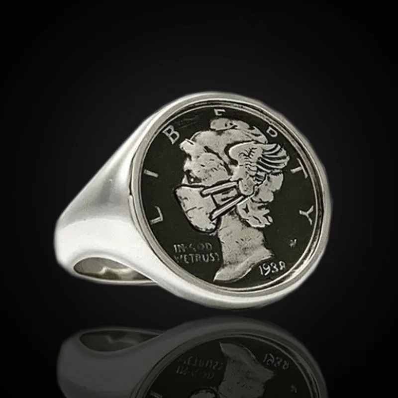 Кольцо в стиле ретро для мужчин и женщин, креативное кольцо с монетницей и маской, Классический Благородный дизайн в стиле хип-хоп, панк, арт-дизайн