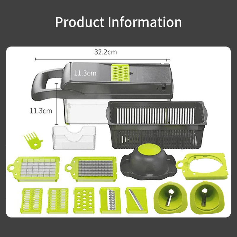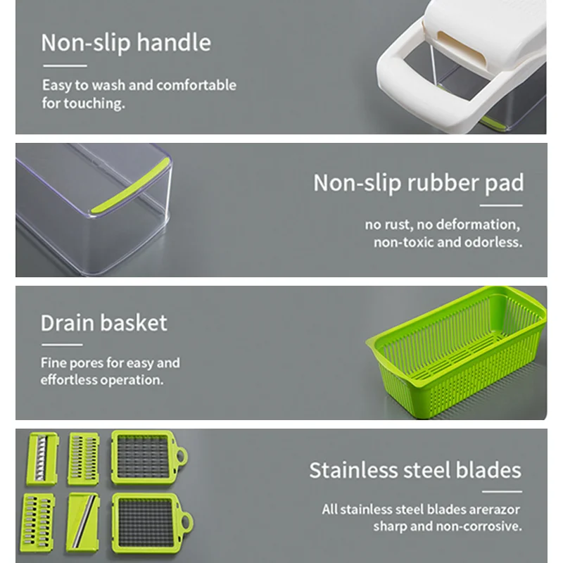С помощью этого кухонного набора для резки вы можете сэкономить 70% времени, попрощайтесь с водянистыми глазами, когда нарезаете лук; И поможет вам готовить еду более элегантно.