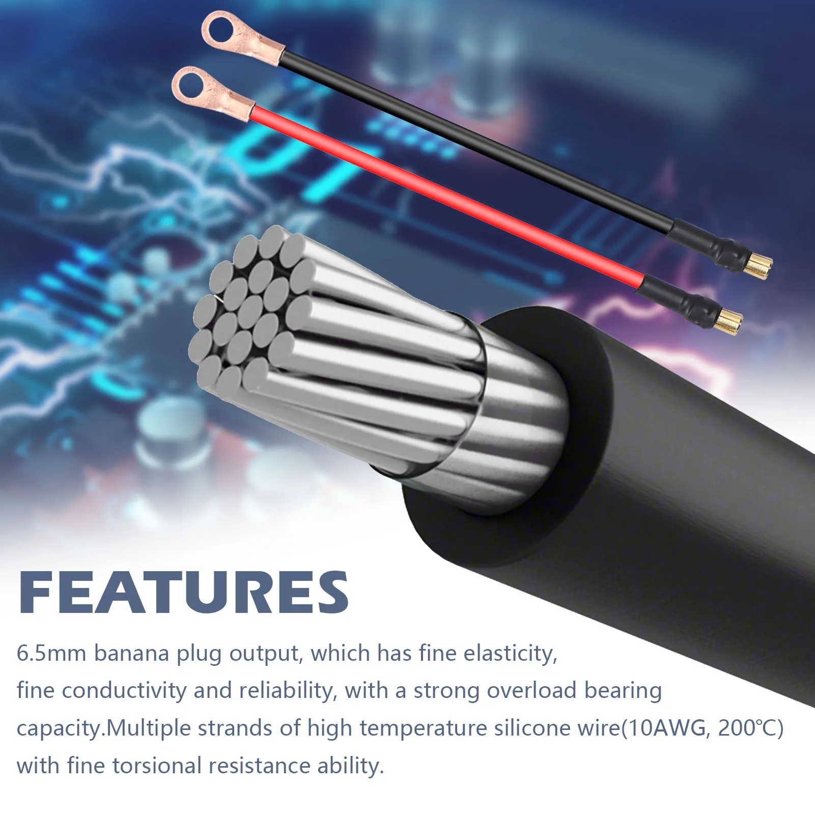 Это пара высококачественных специальных соединительных проводов для подключения ручки для точечной сварки и аппарата для точечной сварки, состоящих из силиконовой проволоки и медный носик наконечников, практичных и обеспечивающих стабильную работу. Уплотнение гидравлическими щипцами может эффективно снизить потери тока, прочный и износостойкий. Несколько нитей высокотемпературной силиконовой проволоки с тонкой способностью к кручению. Подходит для 18650 Аккумуляторная машина для точечной сварки. Вы можете попробовать. Особенности: Легкий и портативный, стабильный и надежный, износостойкий, обеспечивает длительный срок службы. Специальные соединительные провода для подключения ручки для точечной сварки и аппарата для точечной сварки. Состоит из силиконовой проволоки и медный носик наконечников, практичный и обеспечивает стабильную работу. Выход банановой вилки 6,5 мм, обладает тонкой эластичностью, тонкой проводимостью и надежностью, с высокой грузоподъемностью. Уплотнение гидравлическими щипцами может эффективно снизить потери тока, прочный и износостойкий. Несколько нитей высокотемпературной силиконовой проволоки (10AWG, 200 ℃) с тонкой способностью к кручению. Характеристики: Имя: Соединительный провод Материал: силикон + Чистая медь Длина: 175 мм, 220 мм (Дополнительно, общая длина включает ушки для носа) Размер изделия: 175 мм: 175*10*8 мм/6,89*0,39 * 0.31in 220 мм: 220*10*8 мм/8,66*0,39 * 0.31in Вес изделия: 175 мм: 28 г/0,99 унции 220 мм: 34 г/1,20 унции Посылка: 100*50*30 мм/3,94*1,97 * 1.18in Вес посылка: 175 мм: 35 г/1,23 унции 220 мм: 40 г/1,41 унции Упаковочный лист: 2 * провода