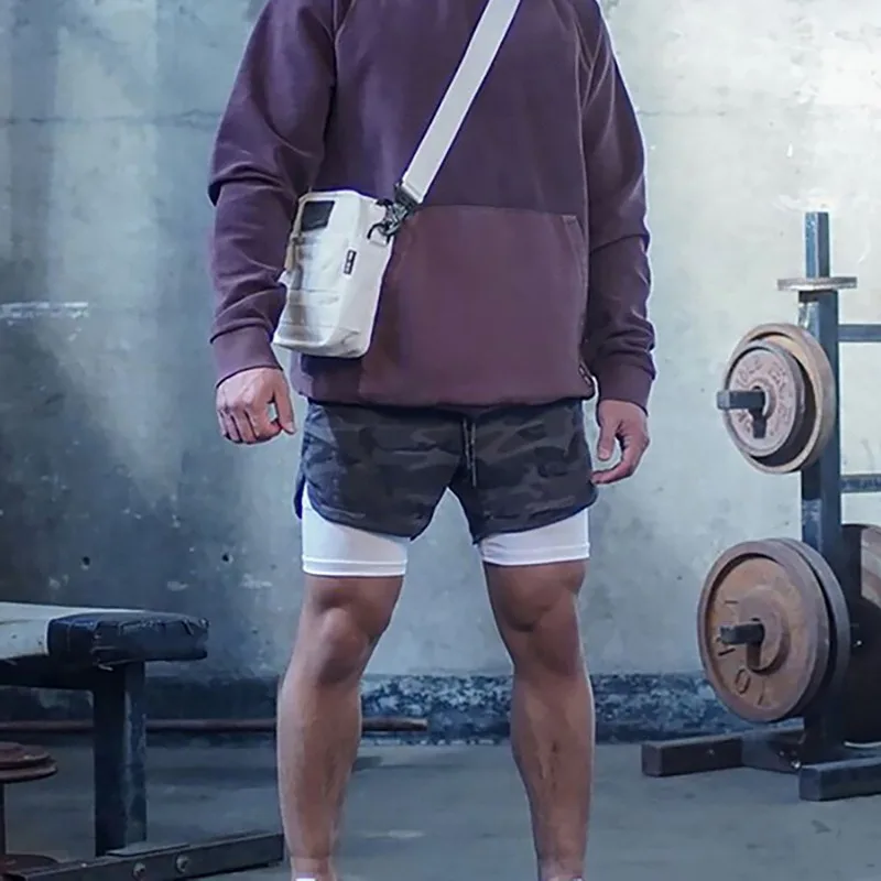 Мужские камуфляжные шорты для тренировок 2 в 1, двухуровневые быстр...