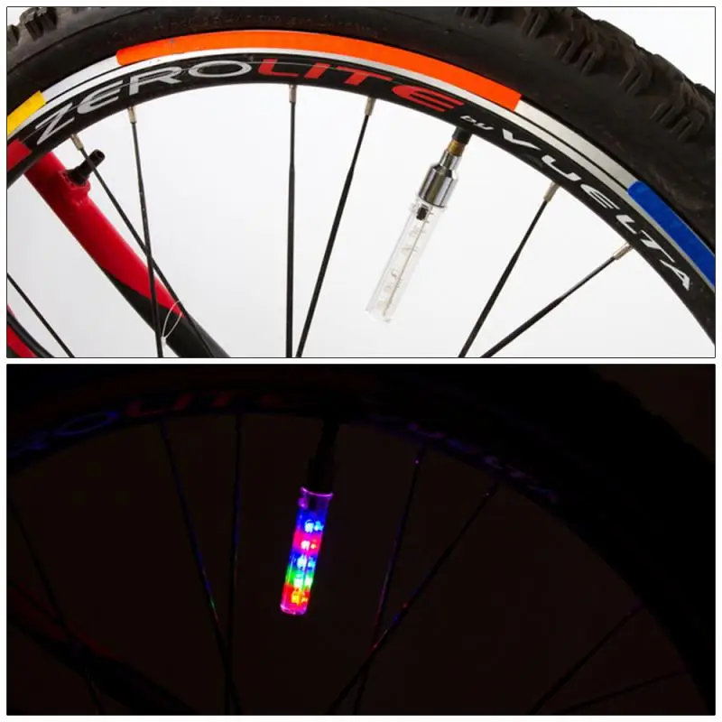 Велосипедные фонари для велосипеда, 2 шт., светодиодная лампа для велосипедных колес, клапанов, спиц, неоновый свет, вспышка, Аксессуары для велосипеда