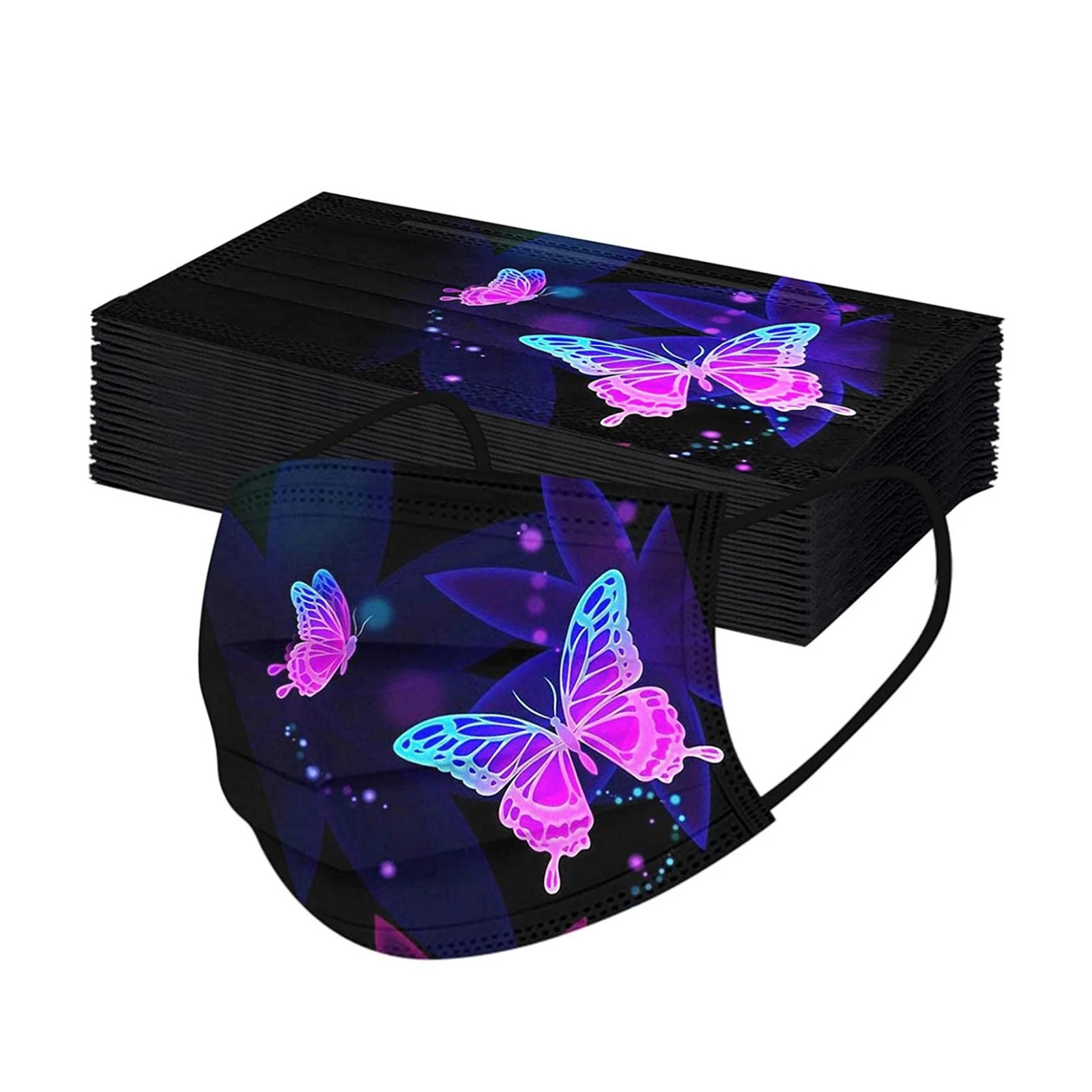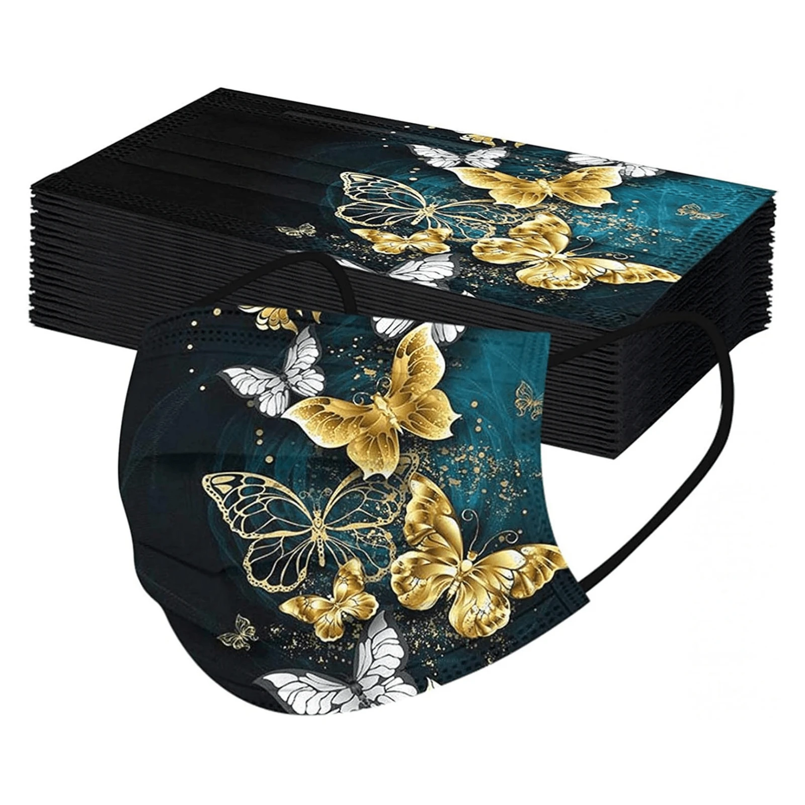 Маска для лица одноразовая для взрослых, маска с принтом бабочек для мужчин и женщин, промышленная 3-слойная, с петлями для ушей, черная, 50 шт.