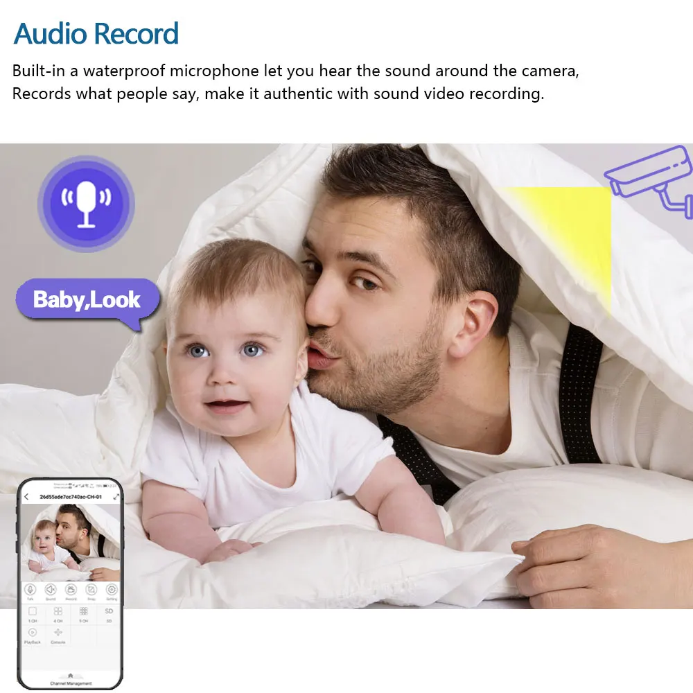 Встроенный водонепроницаемый микрофон позволяет слышать звук вокруг камеры, записывать разговоры людей, делать его достоверным с помощью записи звука и видео.