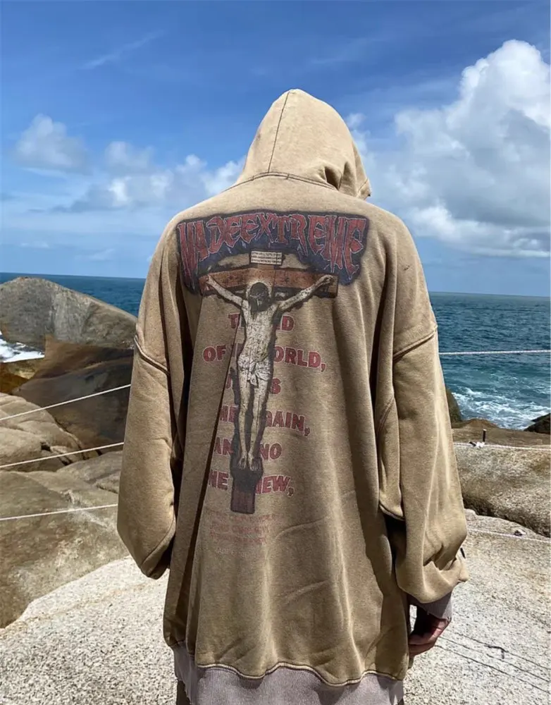 Худи мужское оверсайз в стиле хип-хоп, с графическим принтом