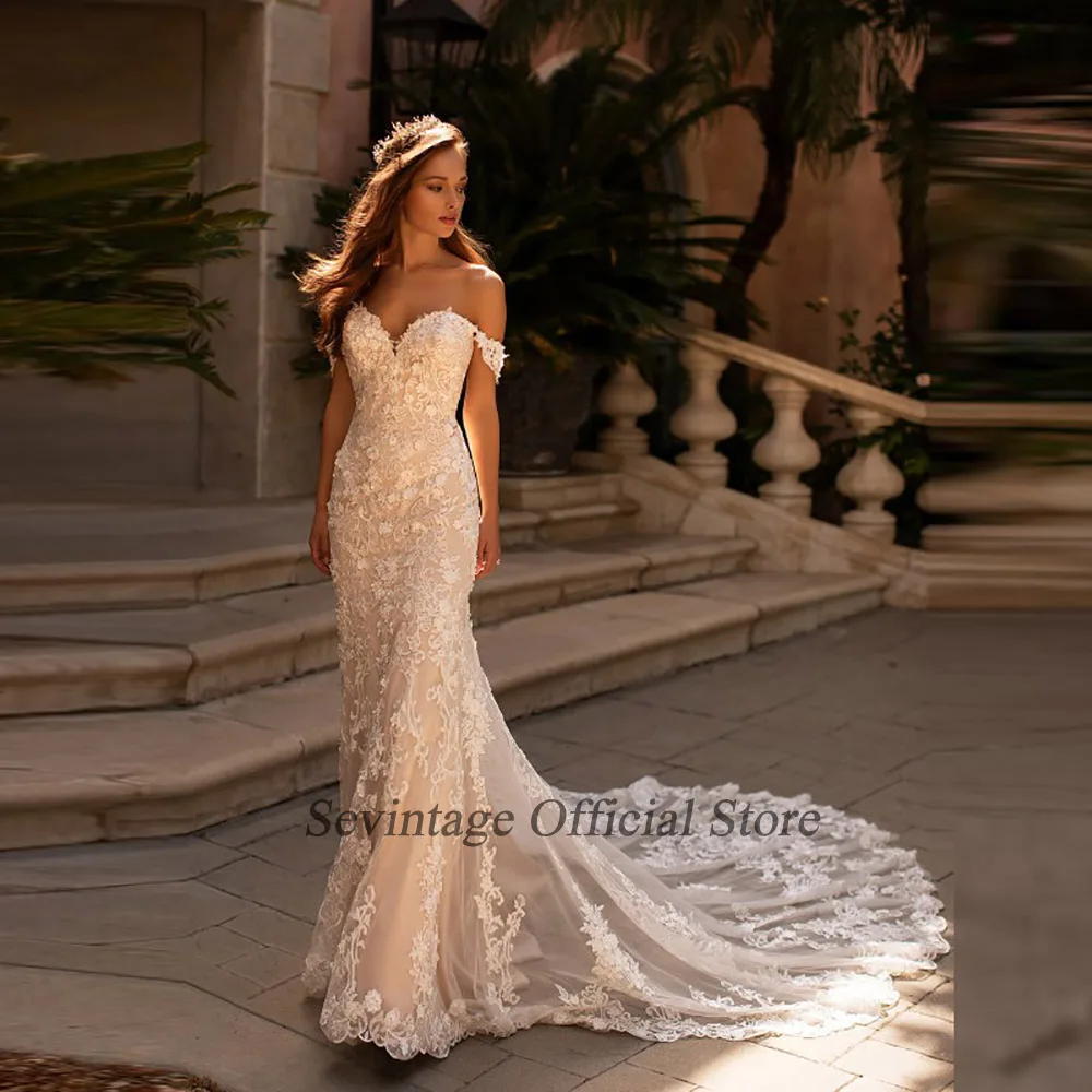 Женское свадебное платье с юбкой годе Sevintage, роскошное кружевное платье с аппликацией и открытыми плечами, модель 2021