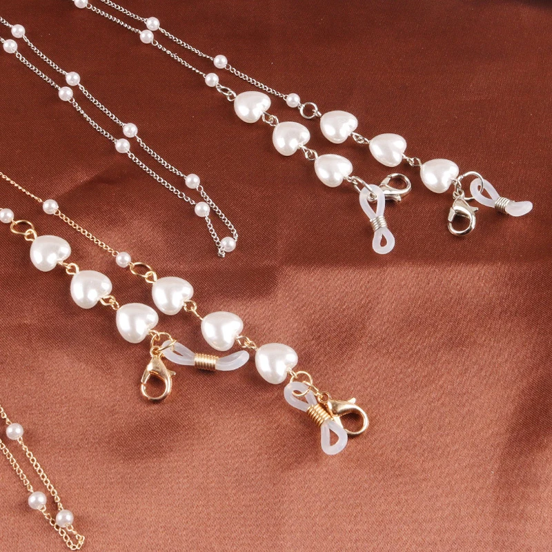 Очки солнцезащитные в форме сердца и жемчуга цепочка для очков шнур для очков ожерелье цепочка для очков шейный ремешок 2021