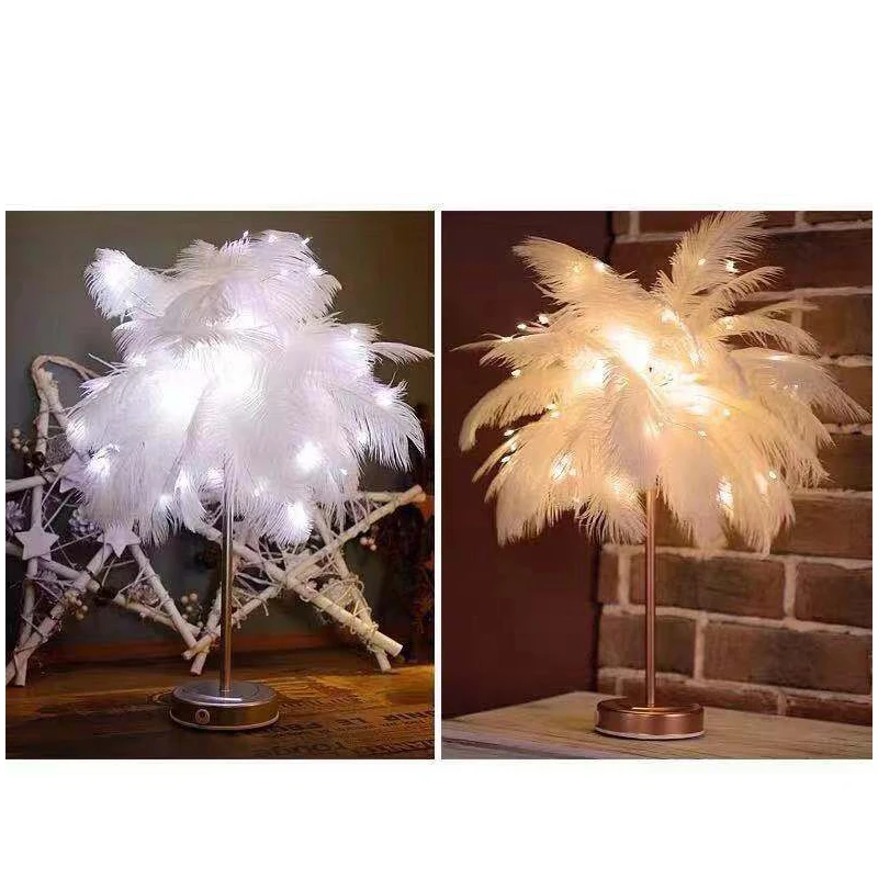 Светодиодная лампа в виде сказочных перьев, настольная декоративная настольная лампа, пульт дистанционного управления для дома, гостиной, спальни, комнаты для девочек, Свадебный декор, светильник