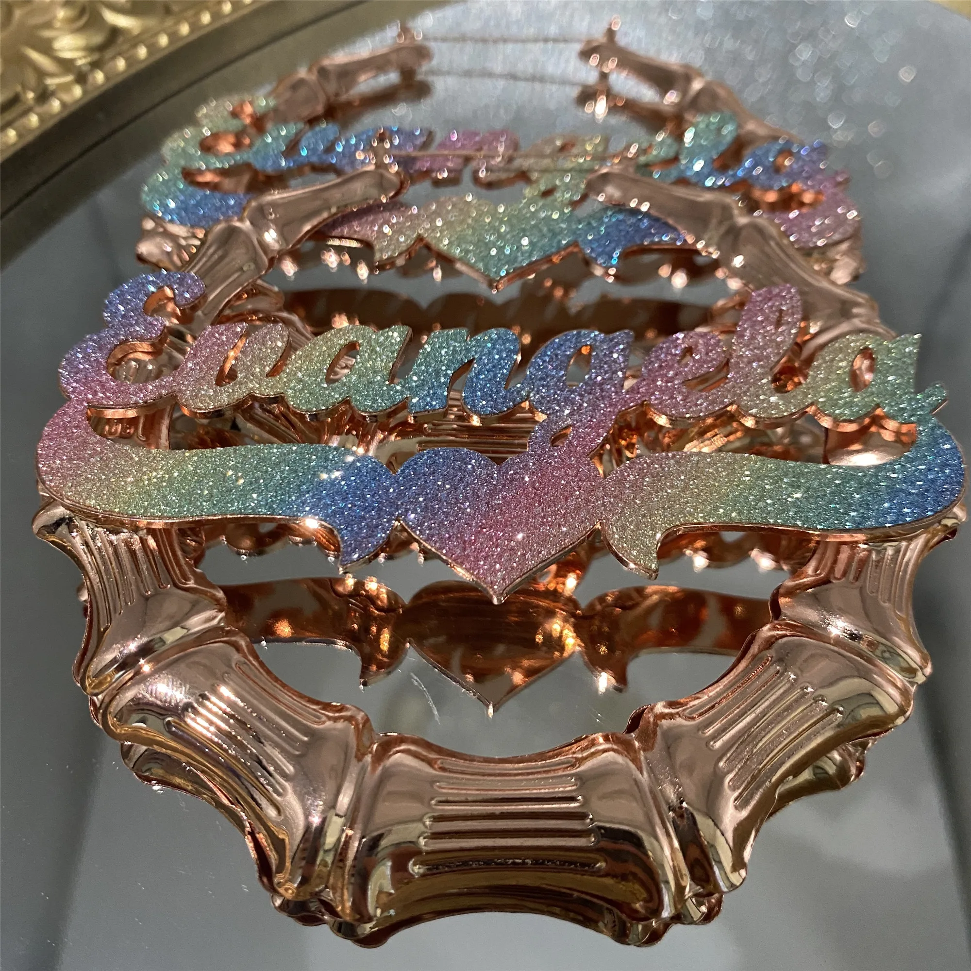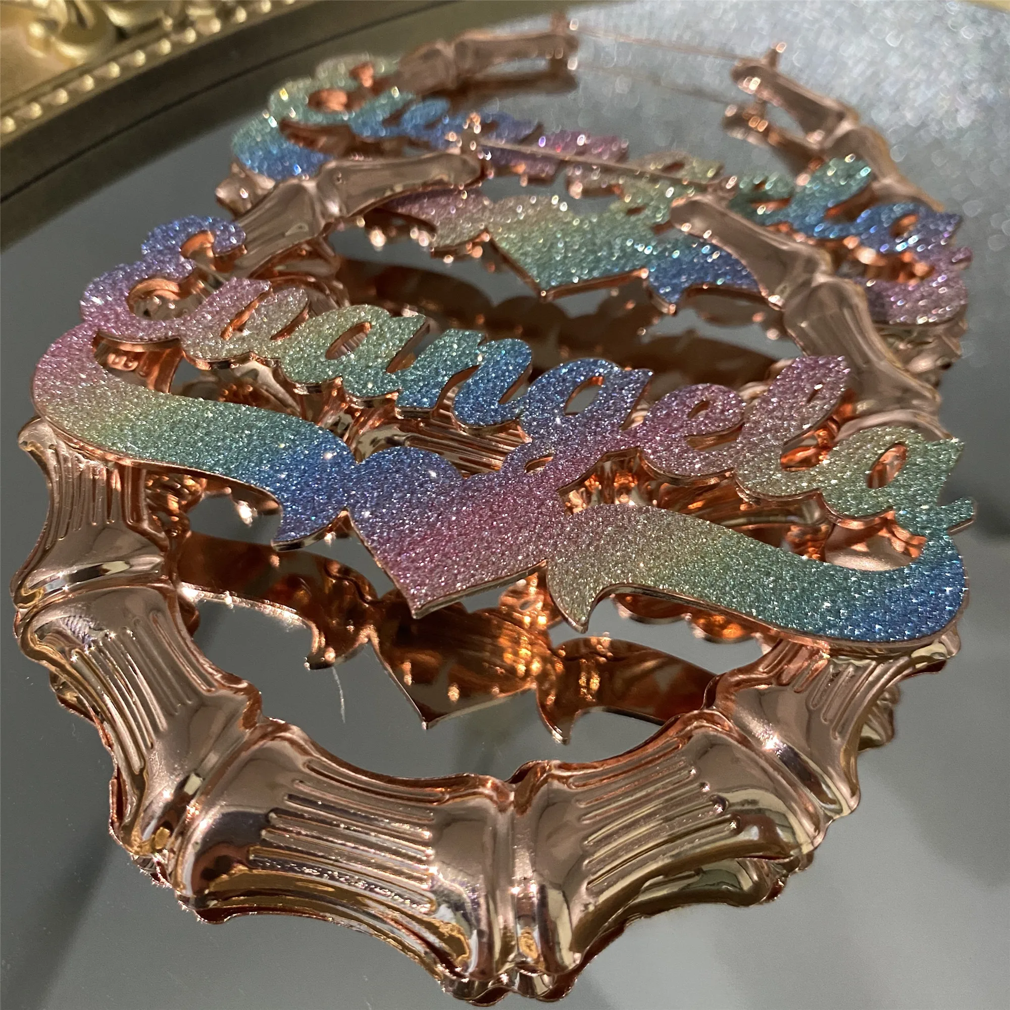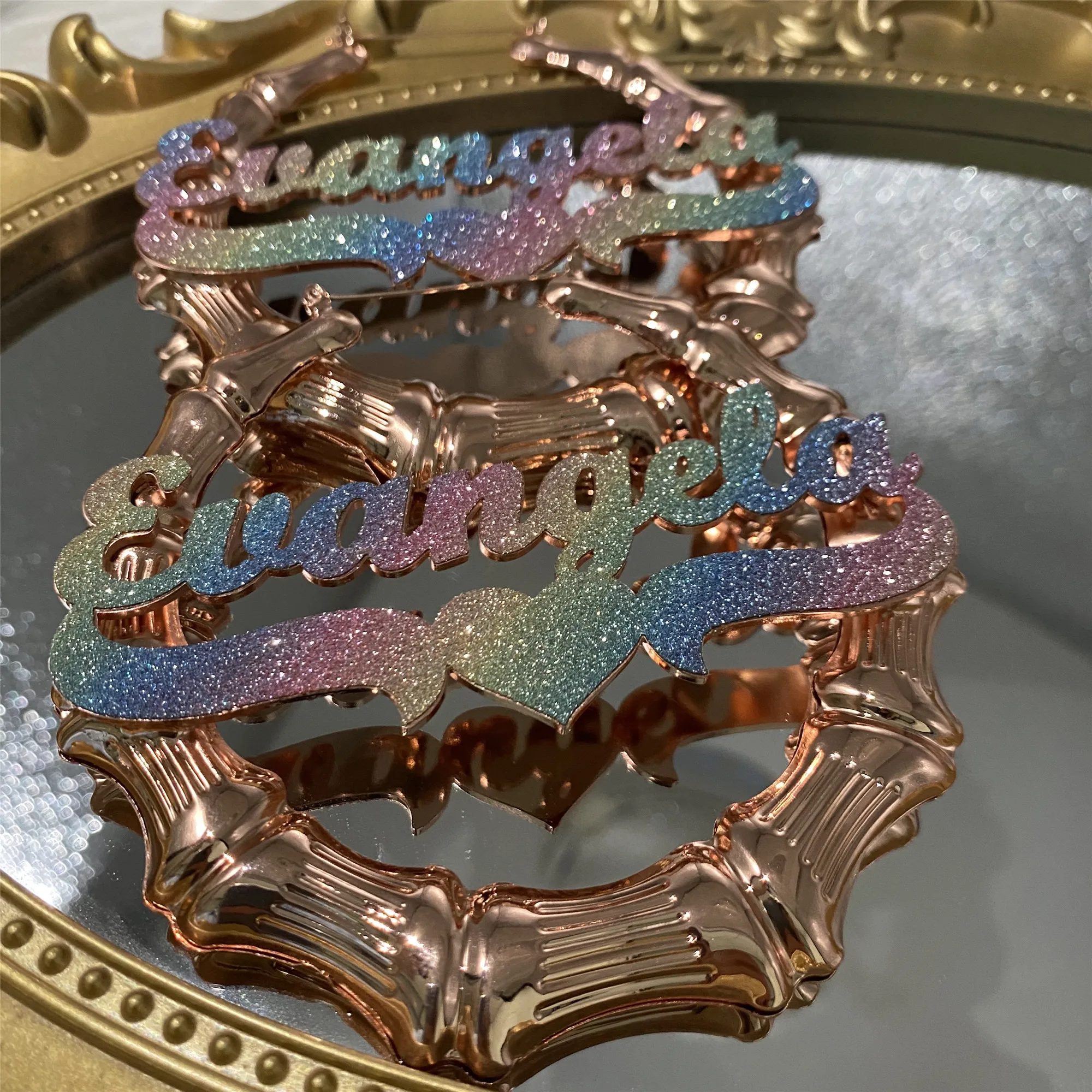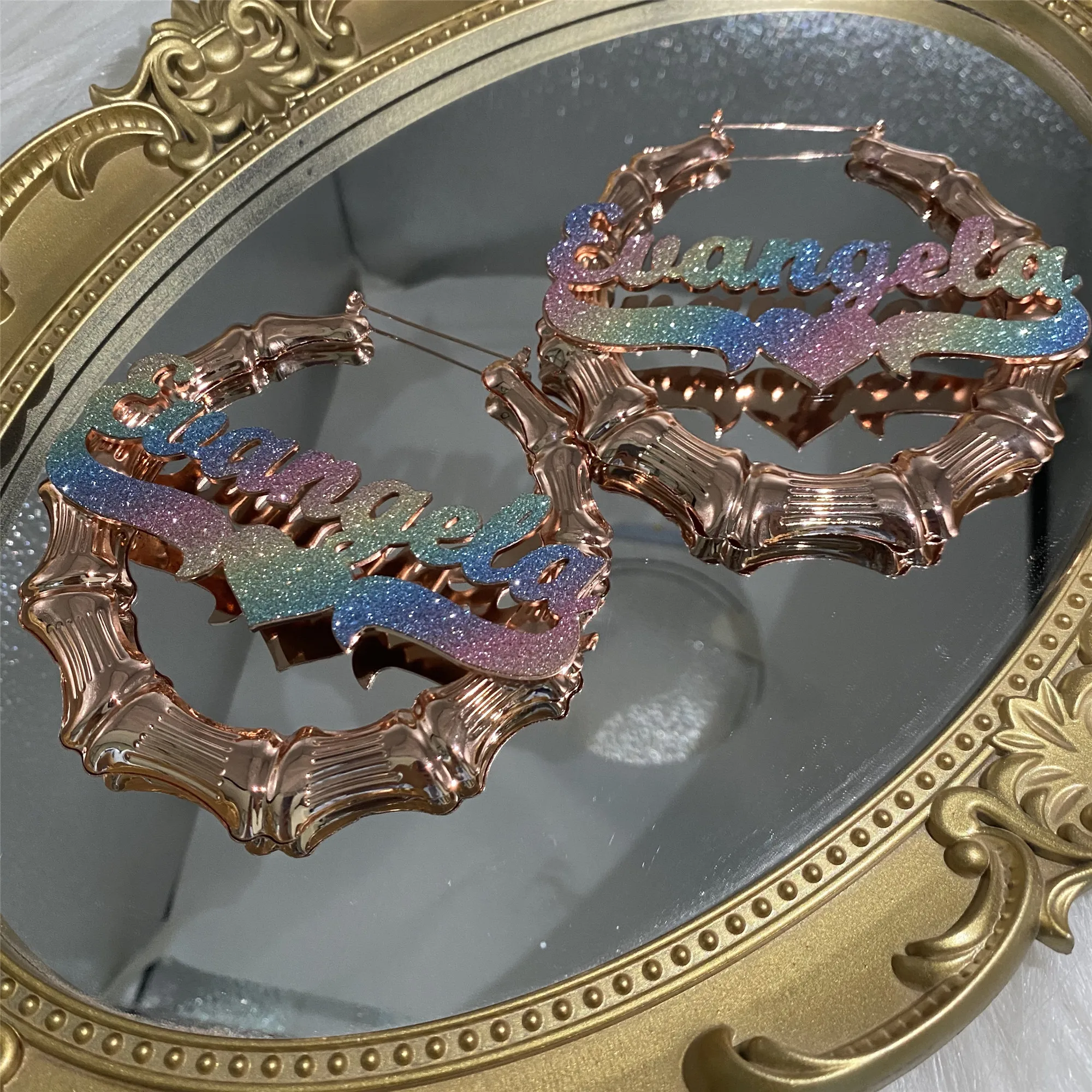 серьги 2021 тренд серьги бамбук Индивидуальное название, Бамбуковые серьги, красочные блестящие искусственные украшения, персонализированные блестящие серьги для женщин, подарки