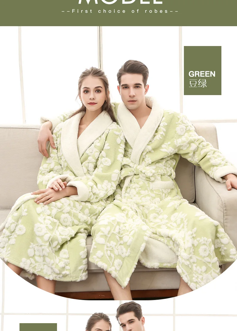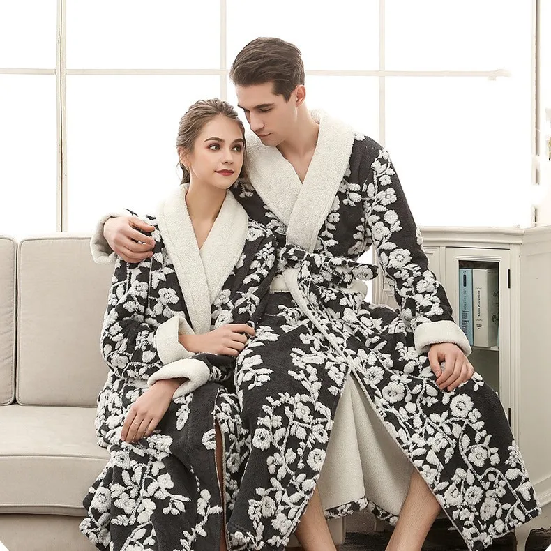 Цветочный фланелевый Халат для пары, зимняя новинка, теплая ночная рубашка толстый банный халат, длинная ночная рубашка, повседневное интимное нижнее белье