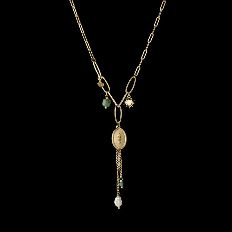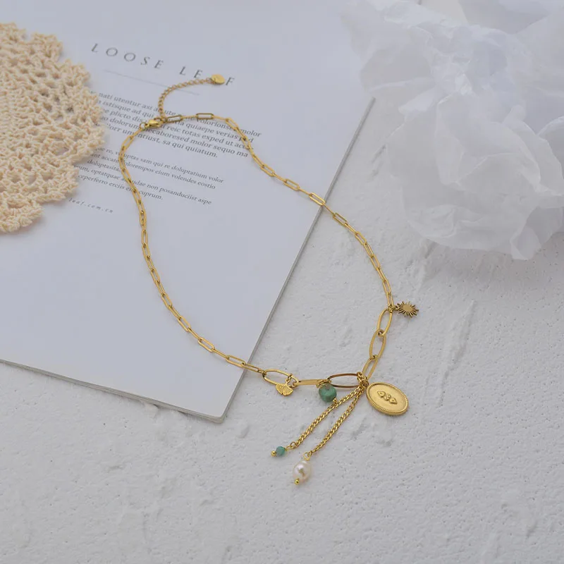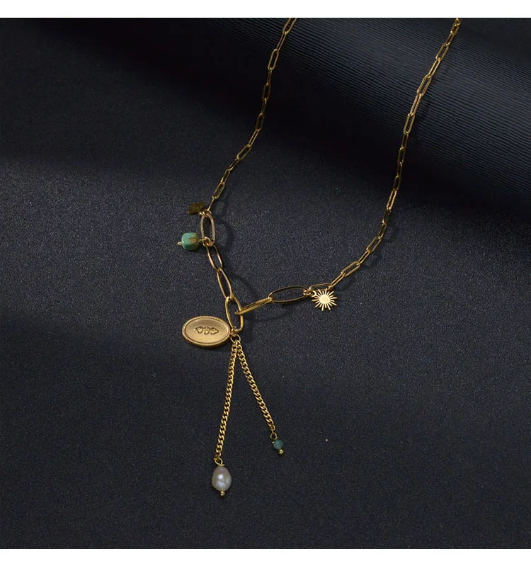 Чокер ручной работы из нержавеющей стали с натуральным камнем и жем...