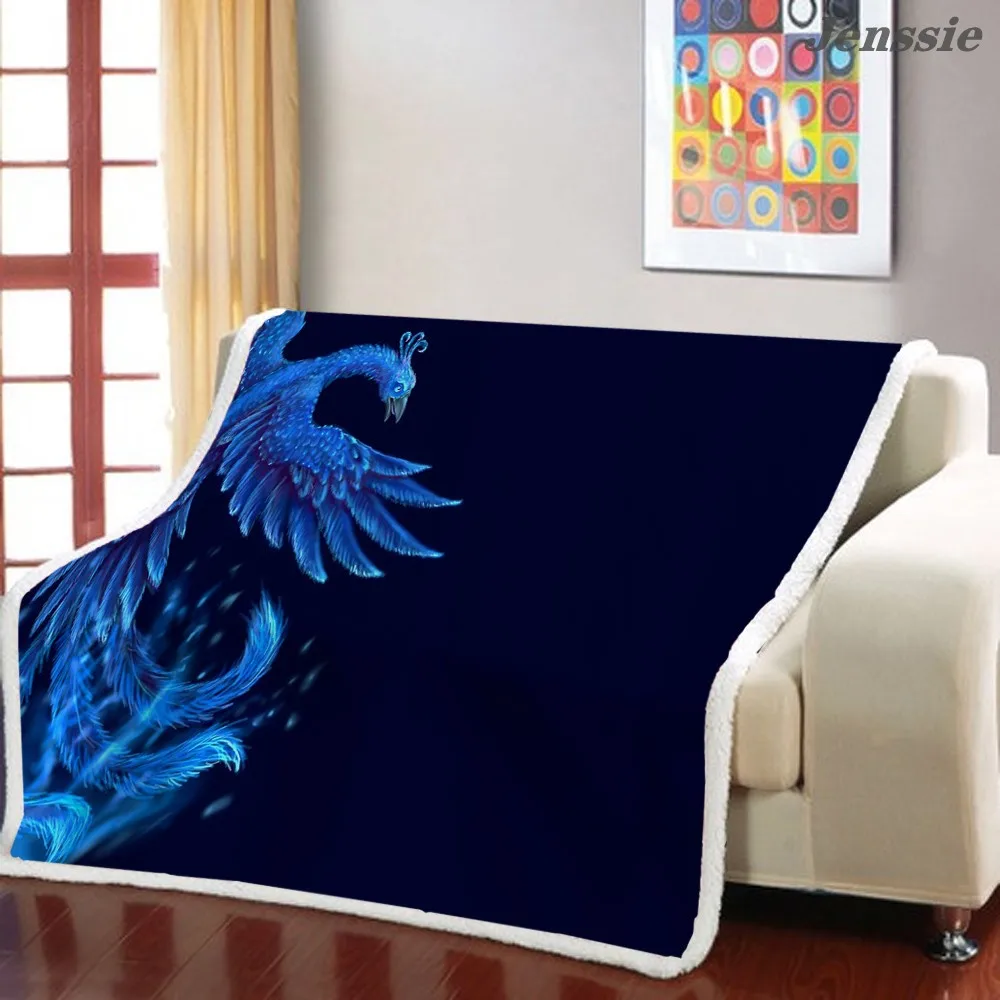 Плюшевое покрывало для дивана с 3D рисунком Феникс, чехол от пыли, покрывало для кондиционера, плед, уличное дорожное одеяло для детей и взрослых