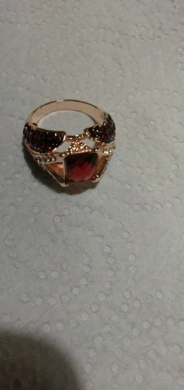 Женское кольцо из красного драгоценного камня с топазом в форме кап...