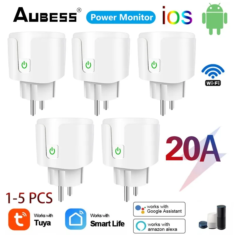 Смарт-розетка Tuya, Wi-Fi, 20 А, с голосовым управлением