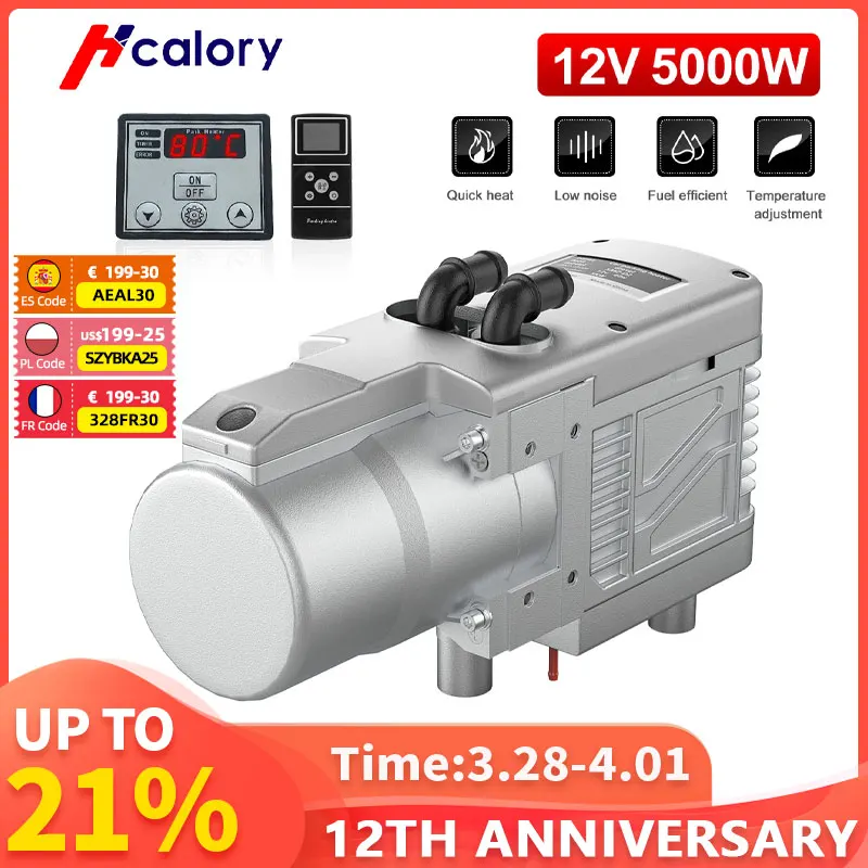 Нагреватель бензинового воздуха HCalory, 12 В, 5 кВт, водонагреватель с дистанционным управлением, ЖК-переключатель, дизельный бензин, универсальный для автомобилей, грузовиков, душевой
