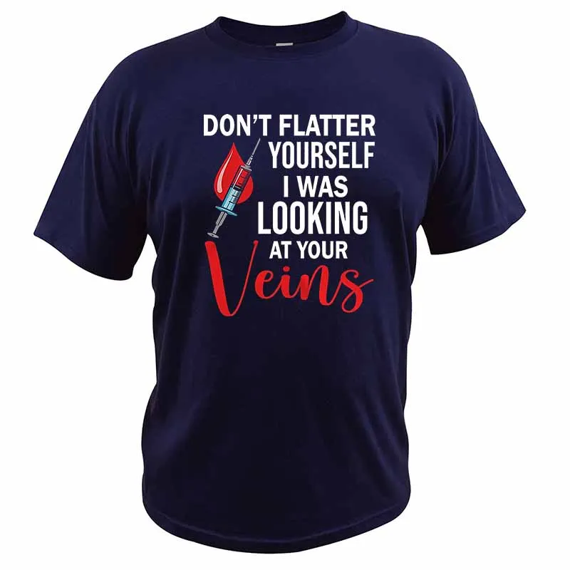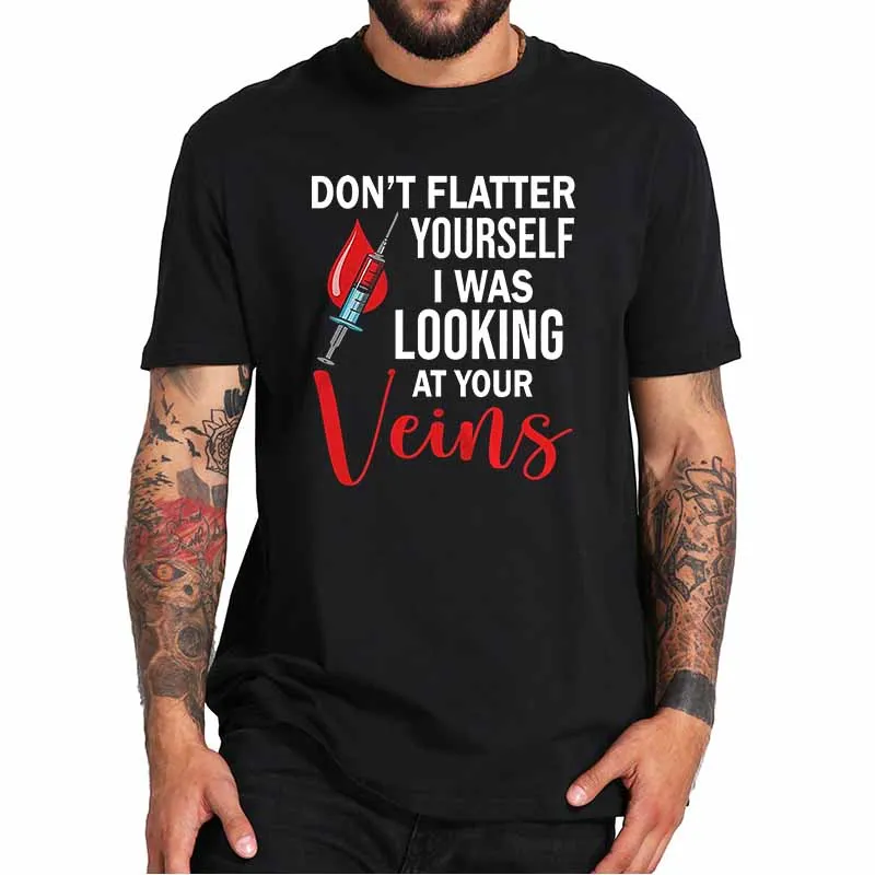 Футболка с надписью Don't Flatter Yourself, I Was Look At Your vein, смешной флейботомист, Phlebotomy, медсестра, винтажные базовые хлопковые летние топы