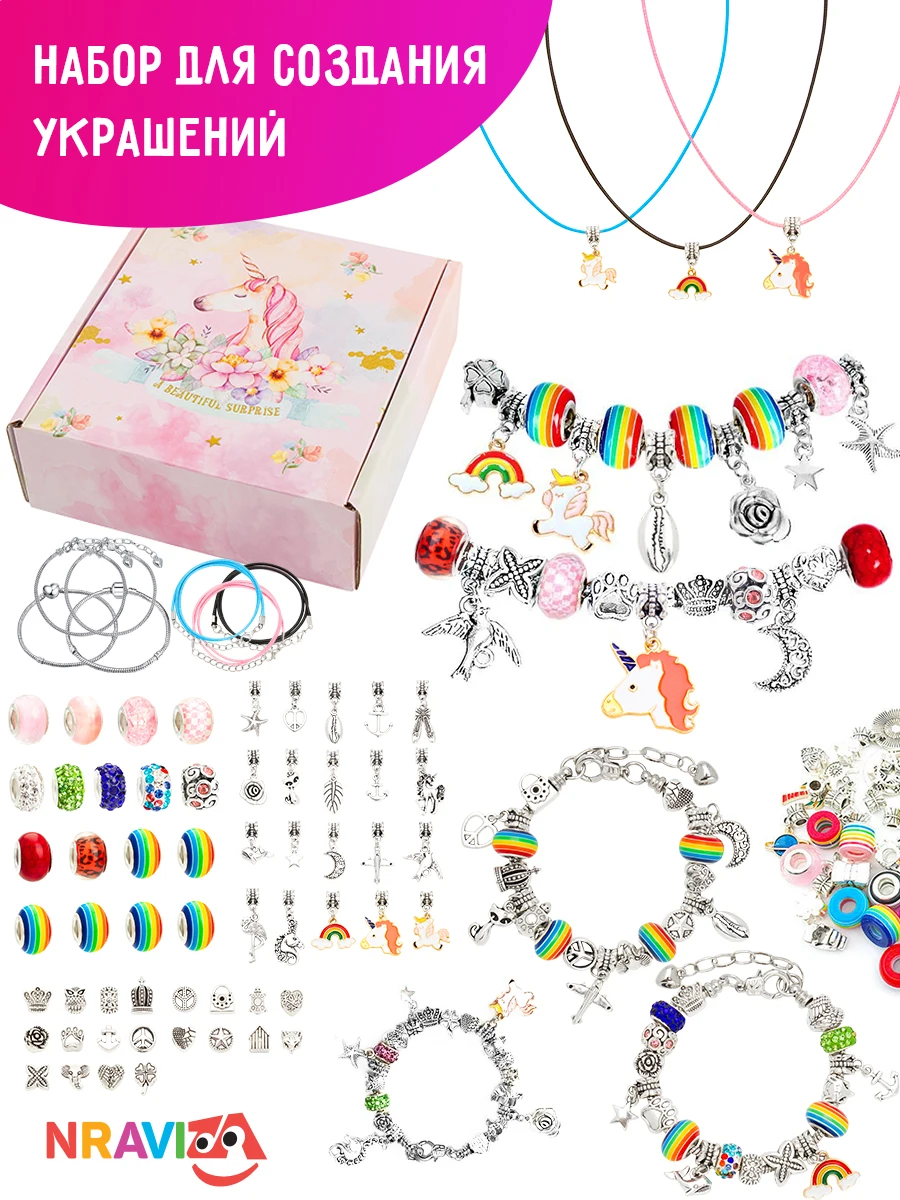 Набор для создания украшений Nraviza для девочек. Подарочный набор на день рождения. Набор браслетов