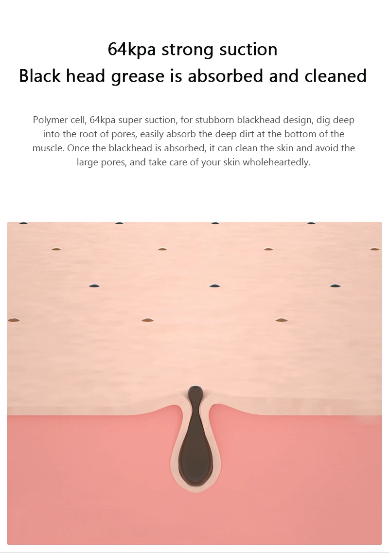 Полимерное электрическое ядро, 64 кПа супер всасывание, предназначено для упрямых черных точек, легко впитывает грязь в нижней части кожи. Всасывающее сопло изготовлено из высококачественного микрокристаллического материала.