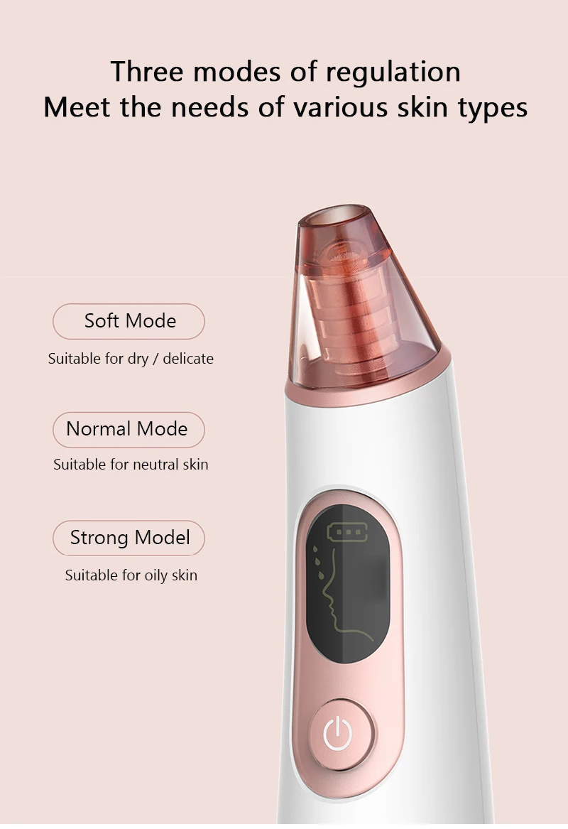 3.. Нажмите, чтобы включить устройство. Во-первых, медленно двигайтесь по лицу в нежном режиме, чтобы высасывать черные точки. Не оставайтесь в одном месте более 3 секунд. Вы можете изменить режим.