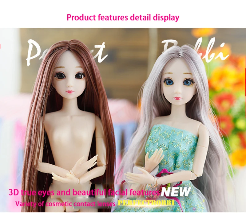 Шарнирная кукла Adollya 30 см, шарнирная кукла с голой шариком для девочек, кукла для самостоятельного макияжа с 3D глазами и 20 подвижными суставами, куклы принцессы 16