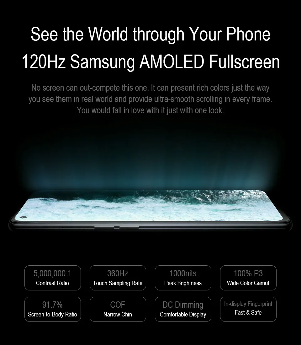 6,43 "2400x1080 FHD + 120 Гц супер AMOLED Полноэкранный