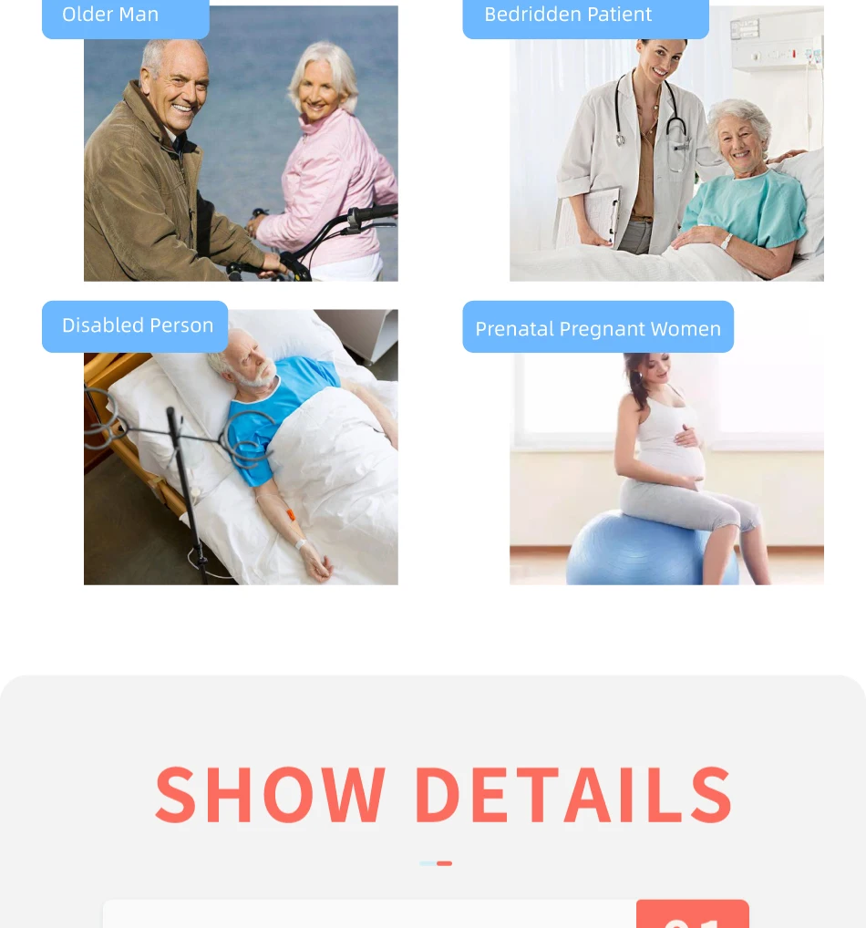 Подходит для пожилых людей, инвалидов, беременных женщин и других взрослых, у которых проблемы с передвижением.