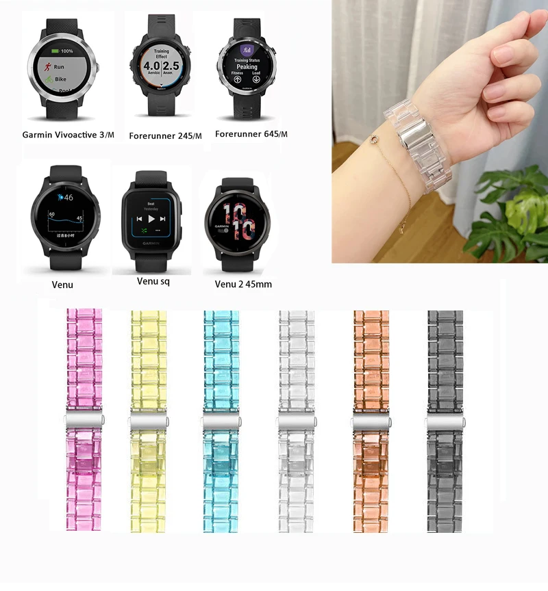 Ремешок из прозрачной смолы Wirstband для Garmin Come Sq Forerunner 245, 245, 645, 645 м, Vivoactive 3, 4, Come 2, 45 мм, Vivomove HR