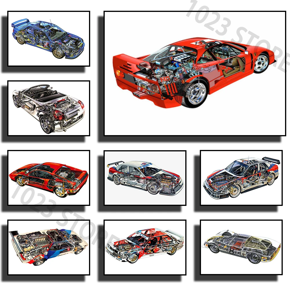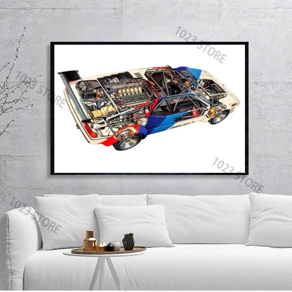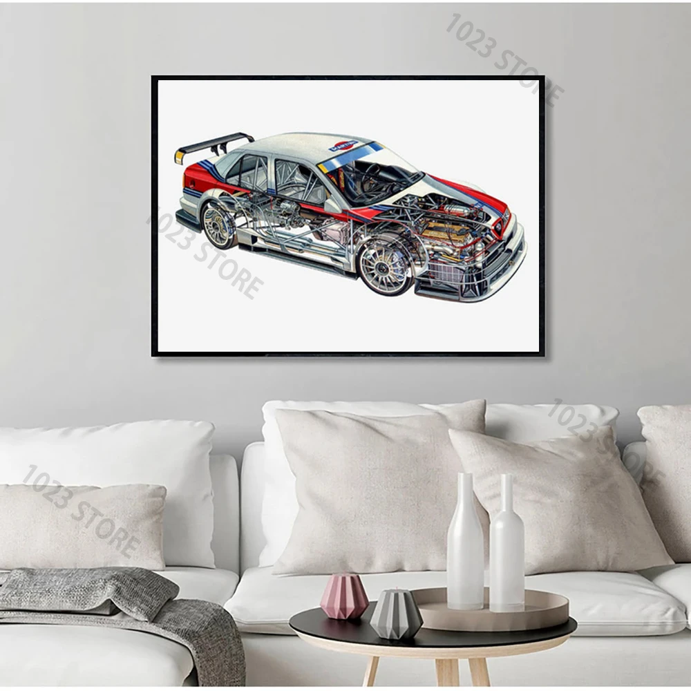 NT082 схема гоночного автомобиля Лидер продаж BMW M3 E30 схема компонентов плакат настенное Искусство Холст Картина принты для гостиной дома Декор