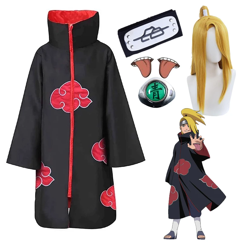 наруто Костюм для косплея Ниндзя из аниме Японские ниндзя, аксессуар для костюма из парика, кольцо, подарок на Хэллоуин, плащ с длинным рукавом Uchiha