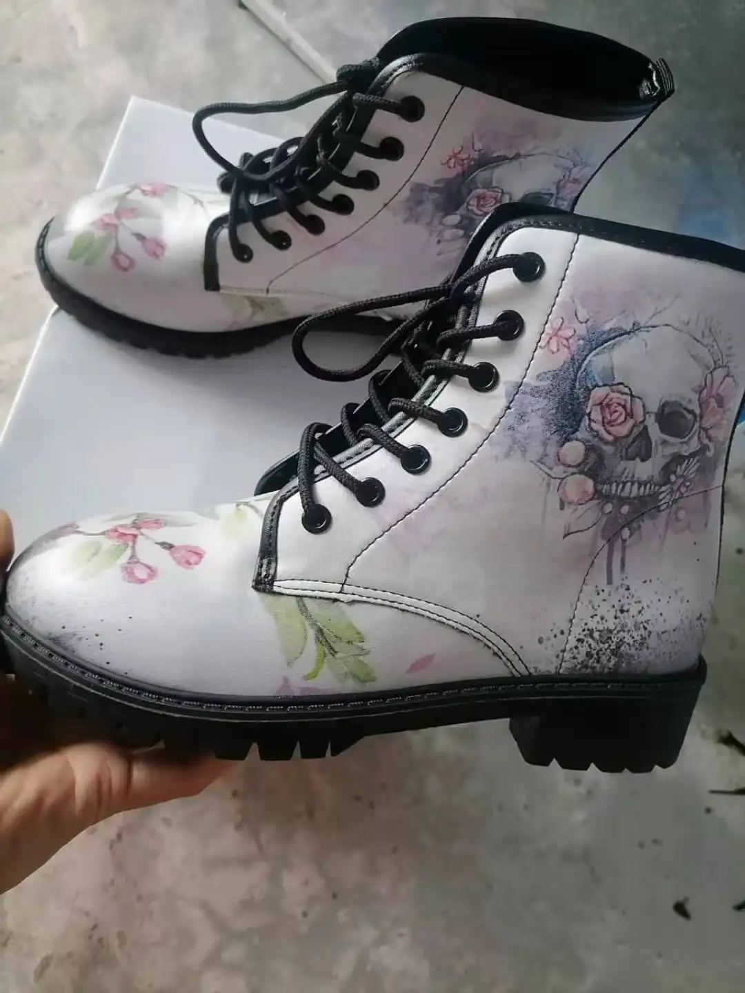 Женские ботинки весна-осень новые модные ботинки мартинсы с принтом на шнуровке стандартная Повседневная Удобная обувь в европейском и американском стиле